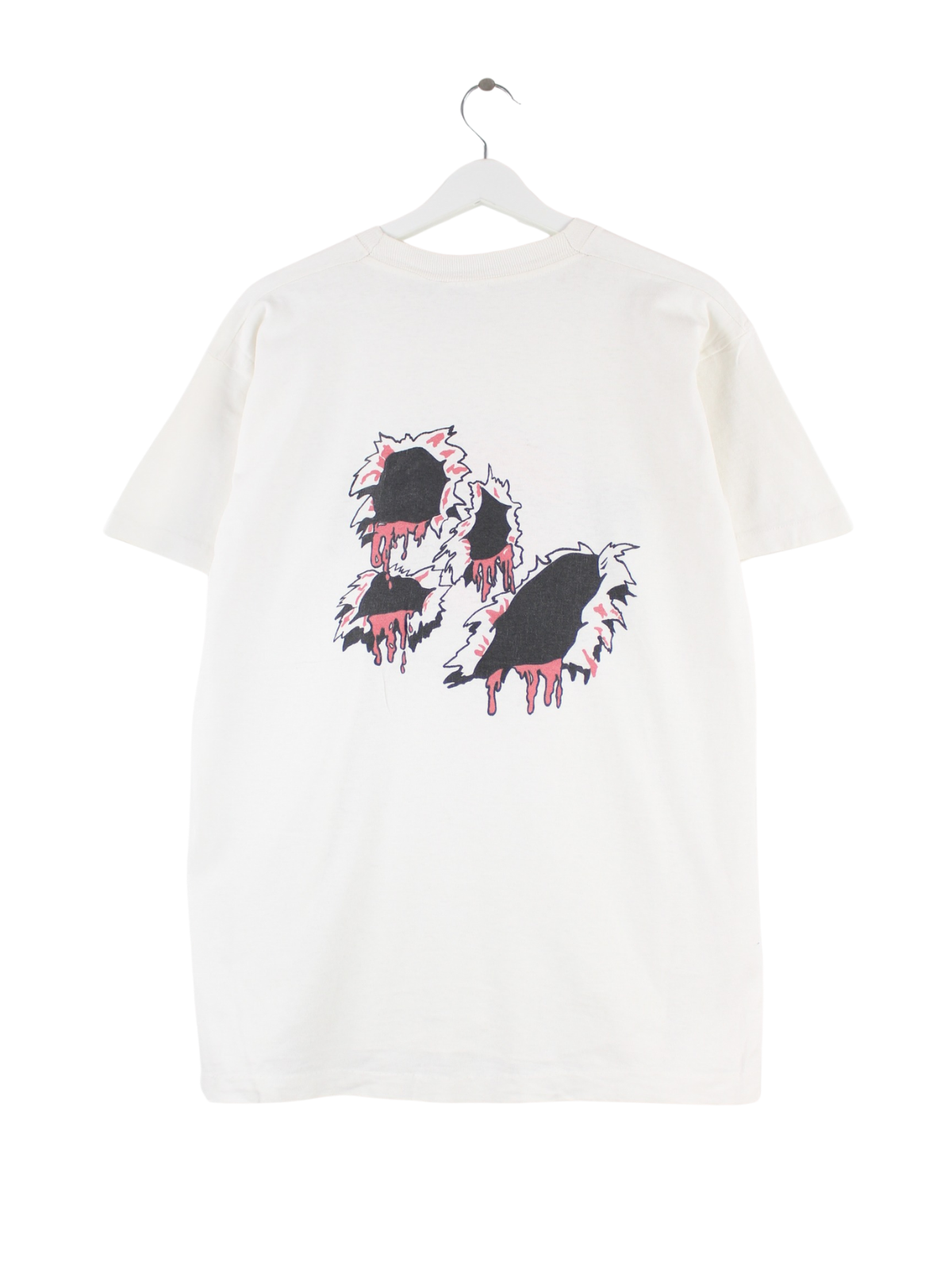 Screen Stars 90s Vintage Bullet Holes Print Single Stitch T-Shirt White M