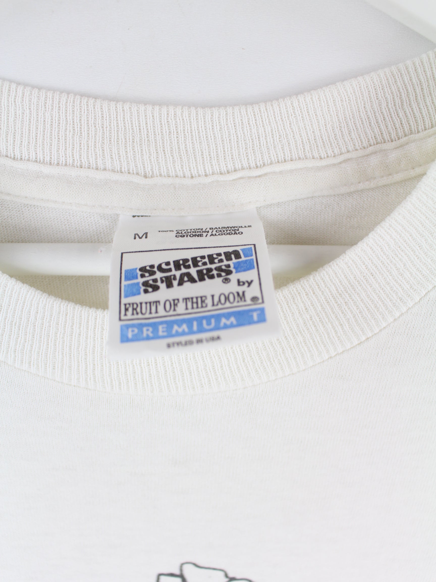 White T-shirt from the Screen Stars brand from the 90's in size M. It is made of cotton and is in good condition. With a chic holes print.