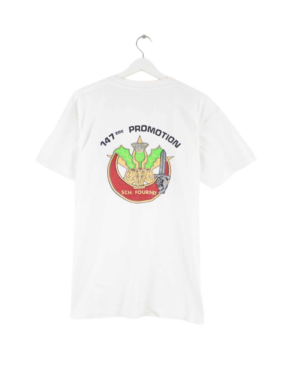 White T-shirt from the label Screen Stars from the 90's in size L. It is made of cotton and is available from us in good condition. With a beautiful four-panel print.