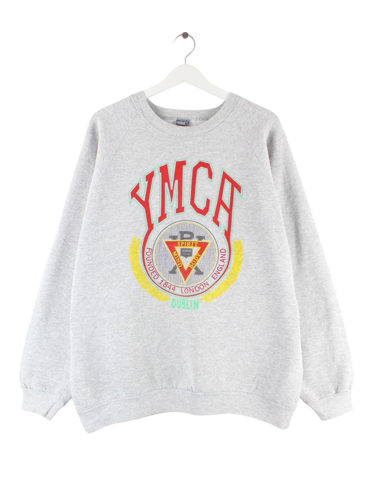 Screen Stars 90s Vintage YMCA Dublin Print Sweater Grau XL