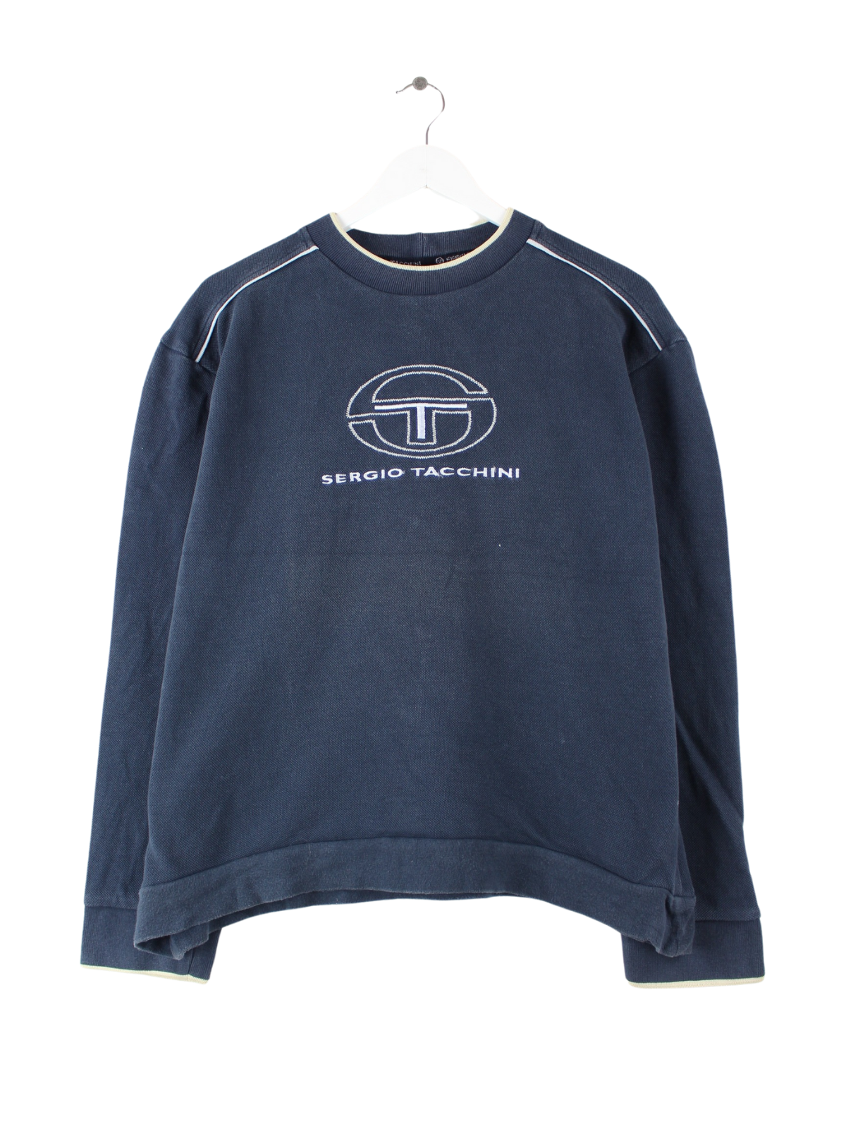 Sergio Tacchini 90s Vintage Embroidered Sweater Blue S