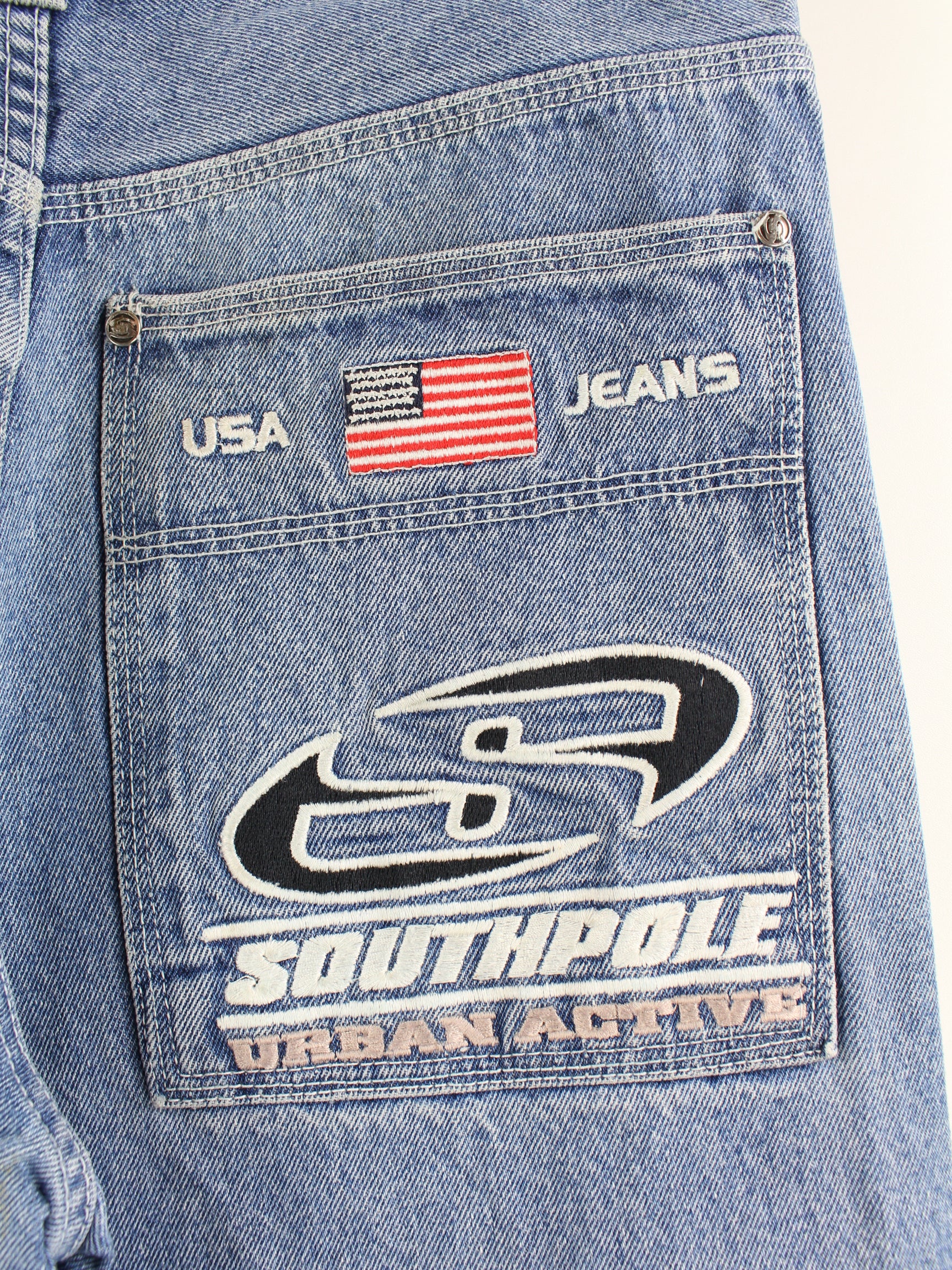 Southpole Urban Active y2k Embroidered Jeans Blue W32 L33