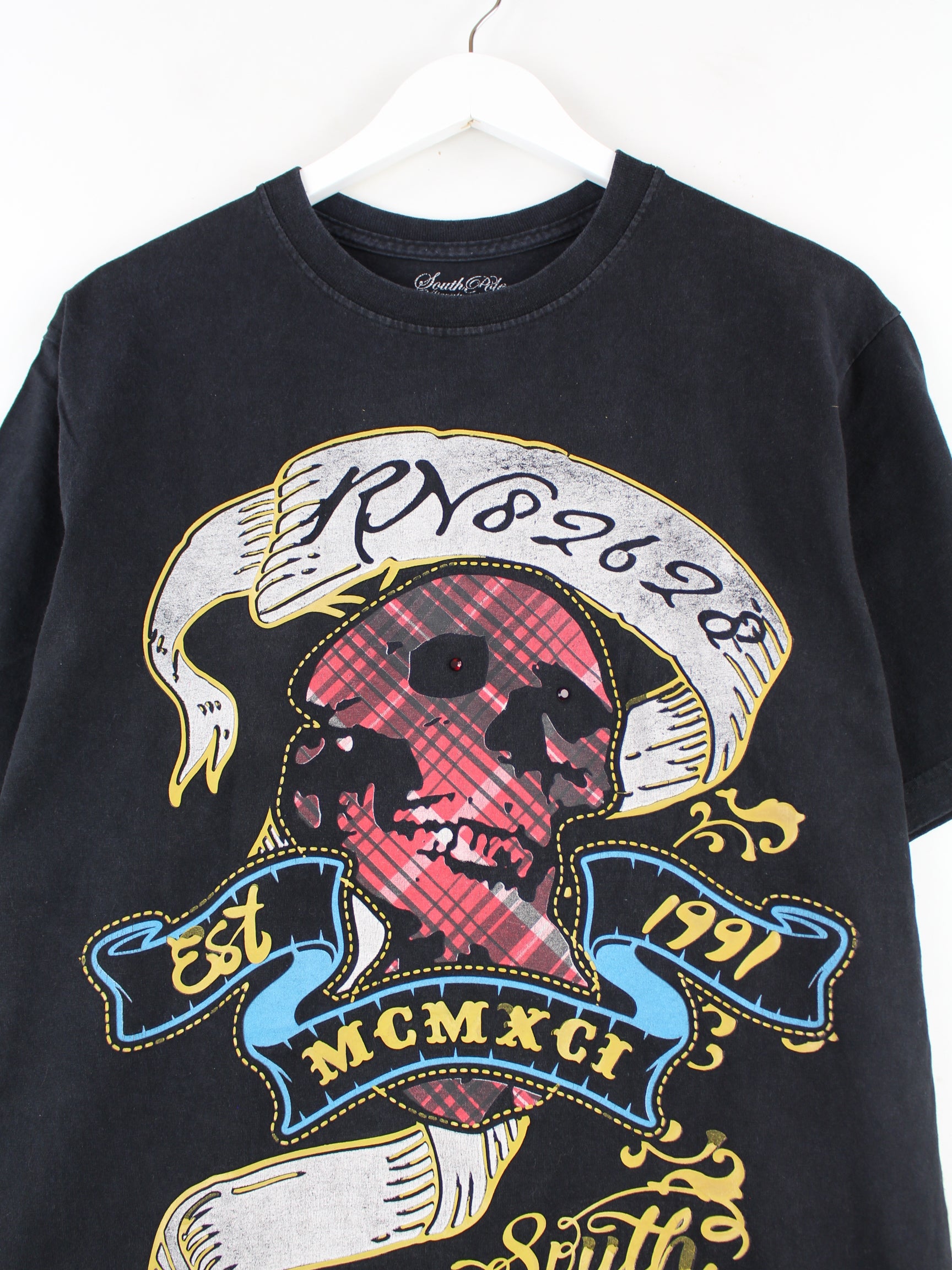 T-shirt by Southpole in size L from the early 2000s. It is made of a cotton blend and comes in black. With a chic y2k print.