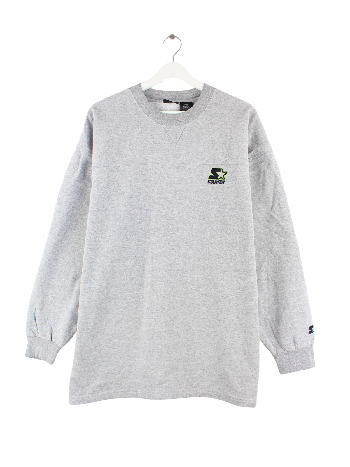Sweater from the Starter brand with embroidery in size XL. It is made from a cotton blend and is in stock in grey.