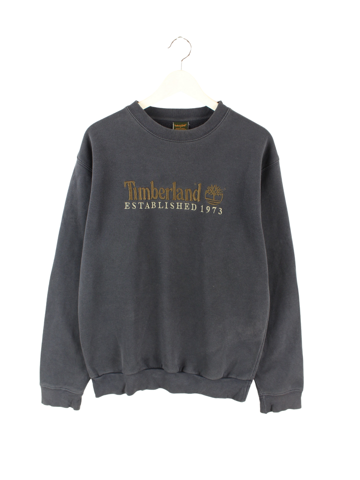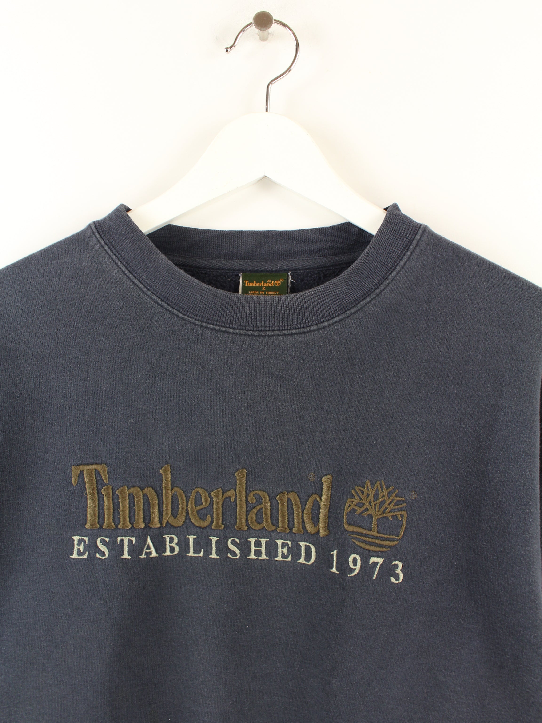 Blue vintage Timberland sweater with embroidered logo.