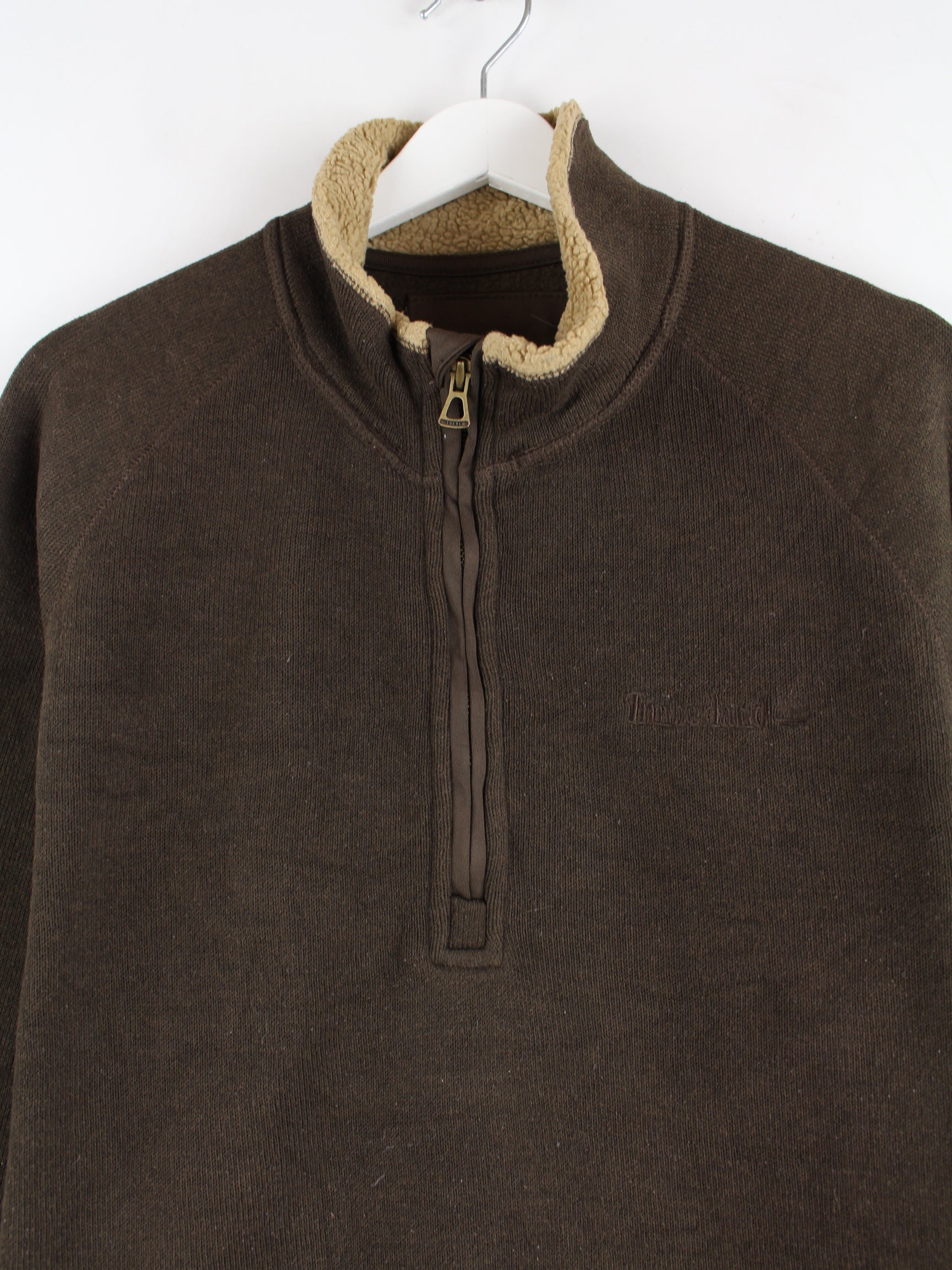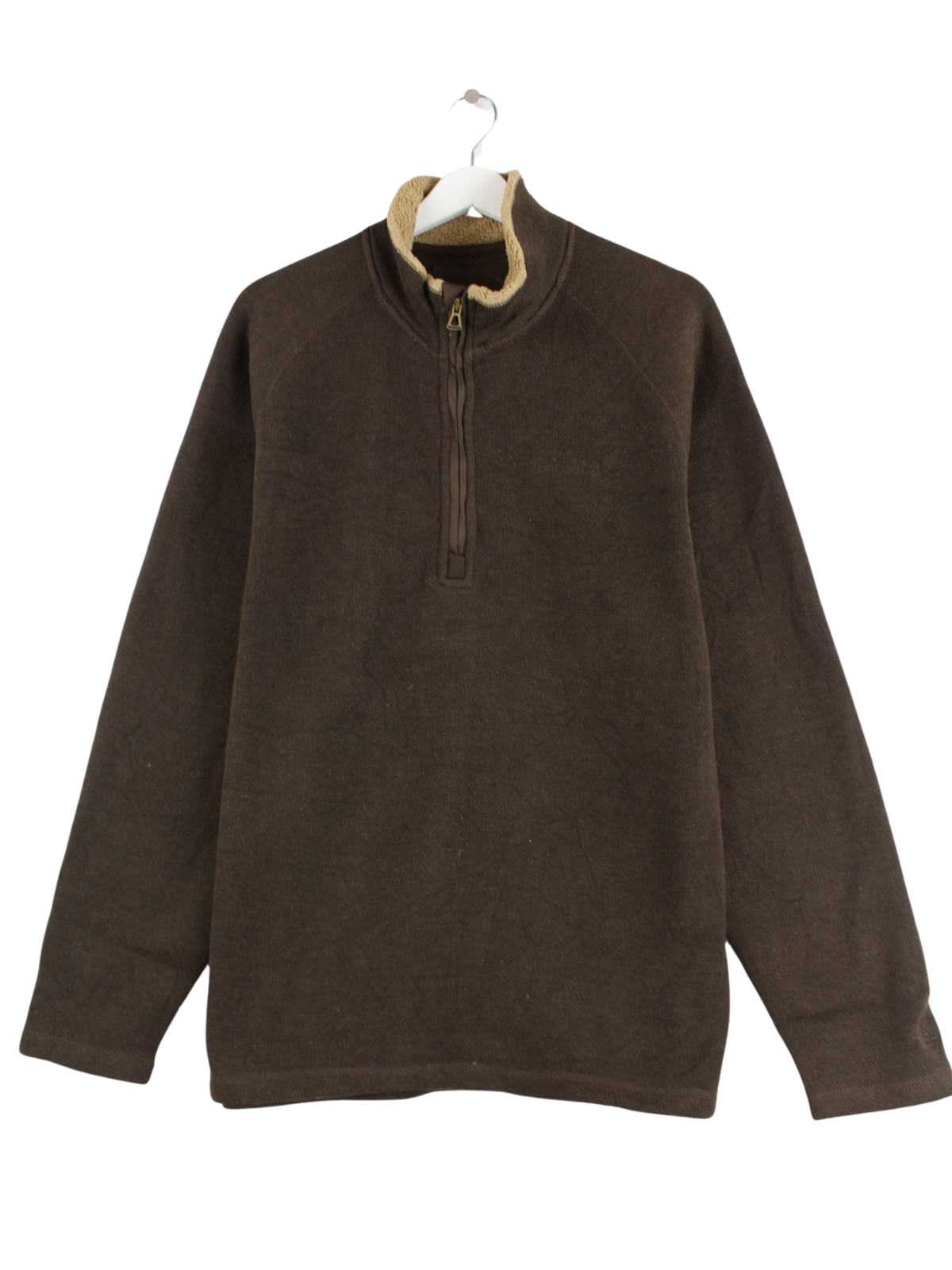 Sweater from the brand Timberland with a short zip in size L. It is made of cotton and is available from us in brown.