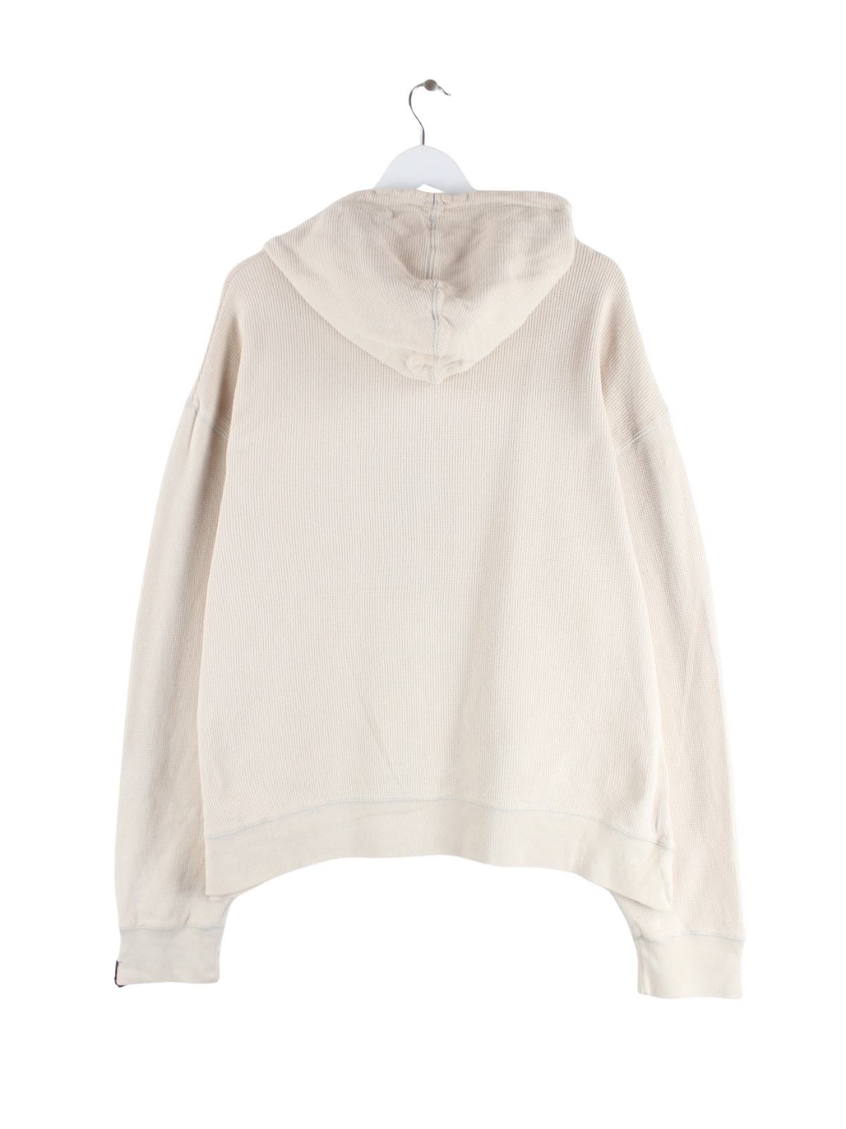 Hoodie der Marke Timberland mit Zip in Größe L. Er ist aus einer Baumwollmischung produziert und in Beige im Bestand.