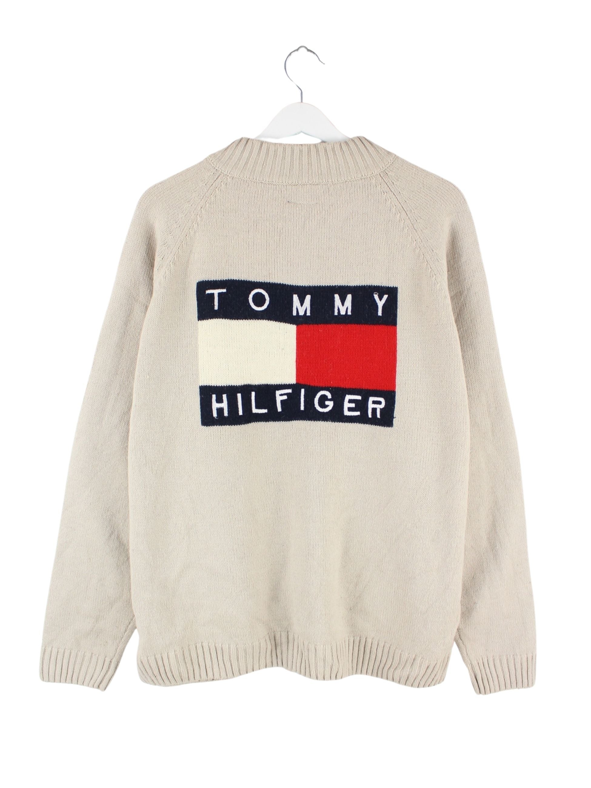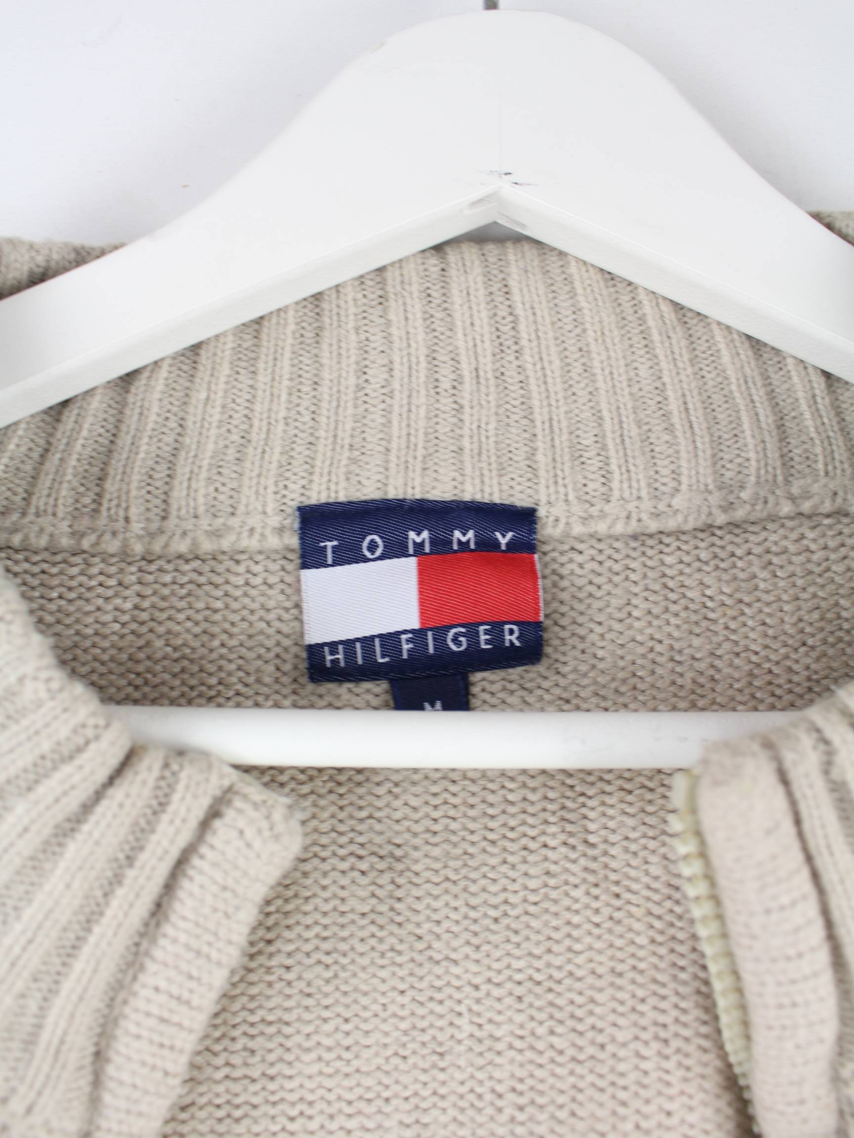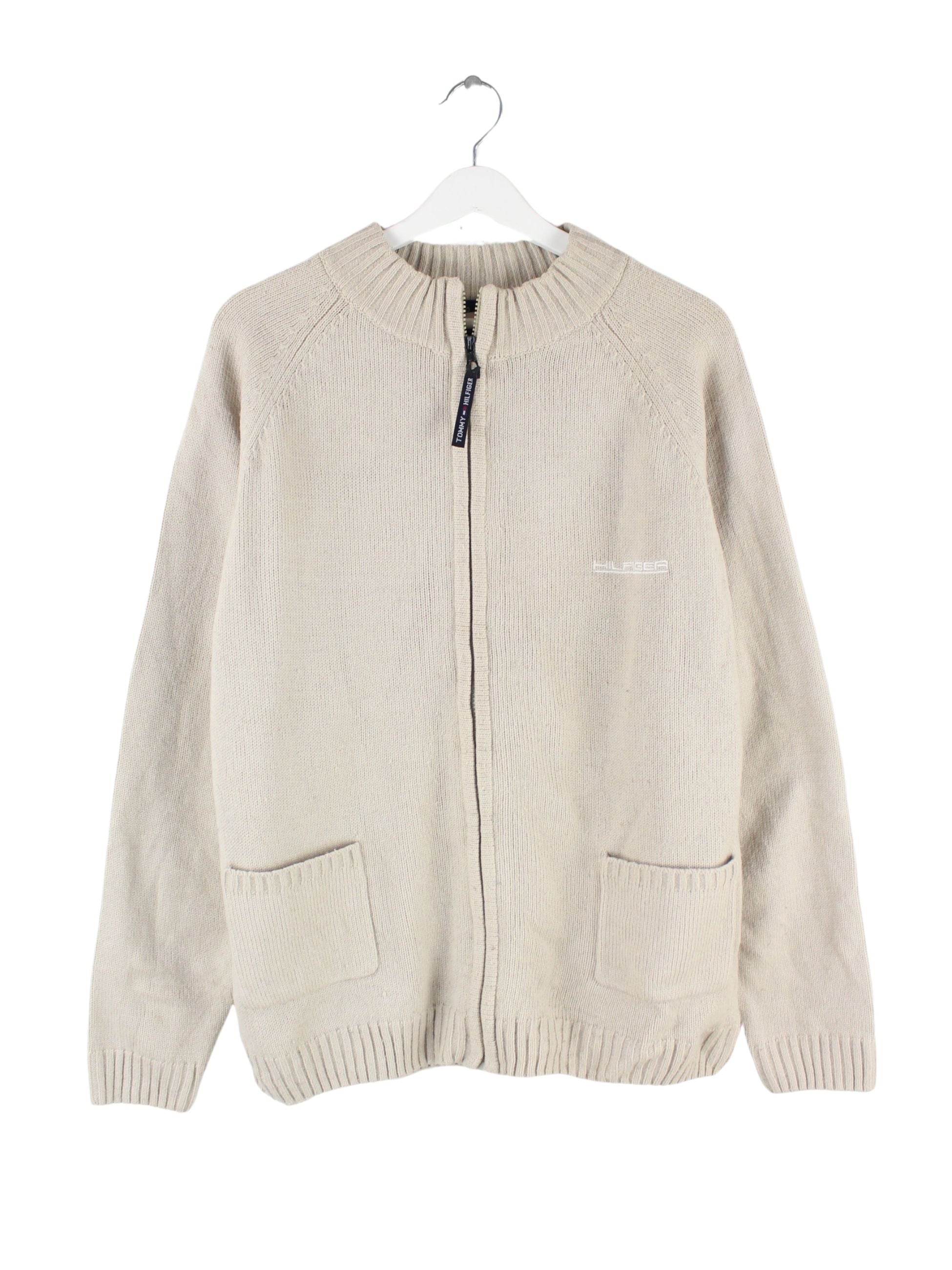 Tommy Hilfiger 90s Vintage Big Logo Embroidered Strickjacke Beige M