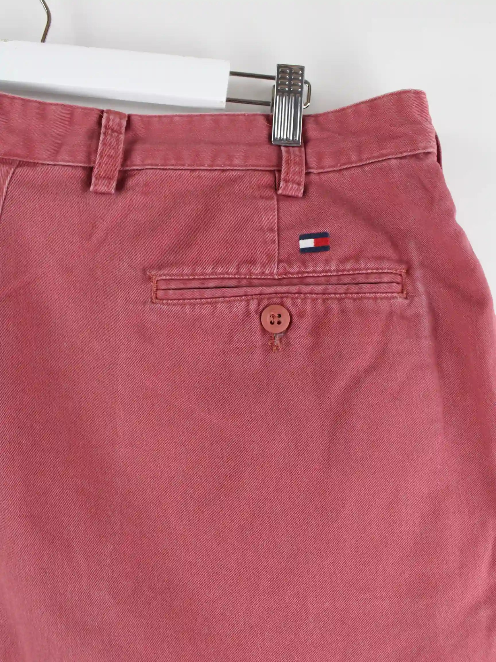 Rote Chino Shorts der Marke Tommy Hilfiger aus den 90'ern in Größe W38. Sie sind aus Baumwolle produziert und in gutem Zustand im Bestand.