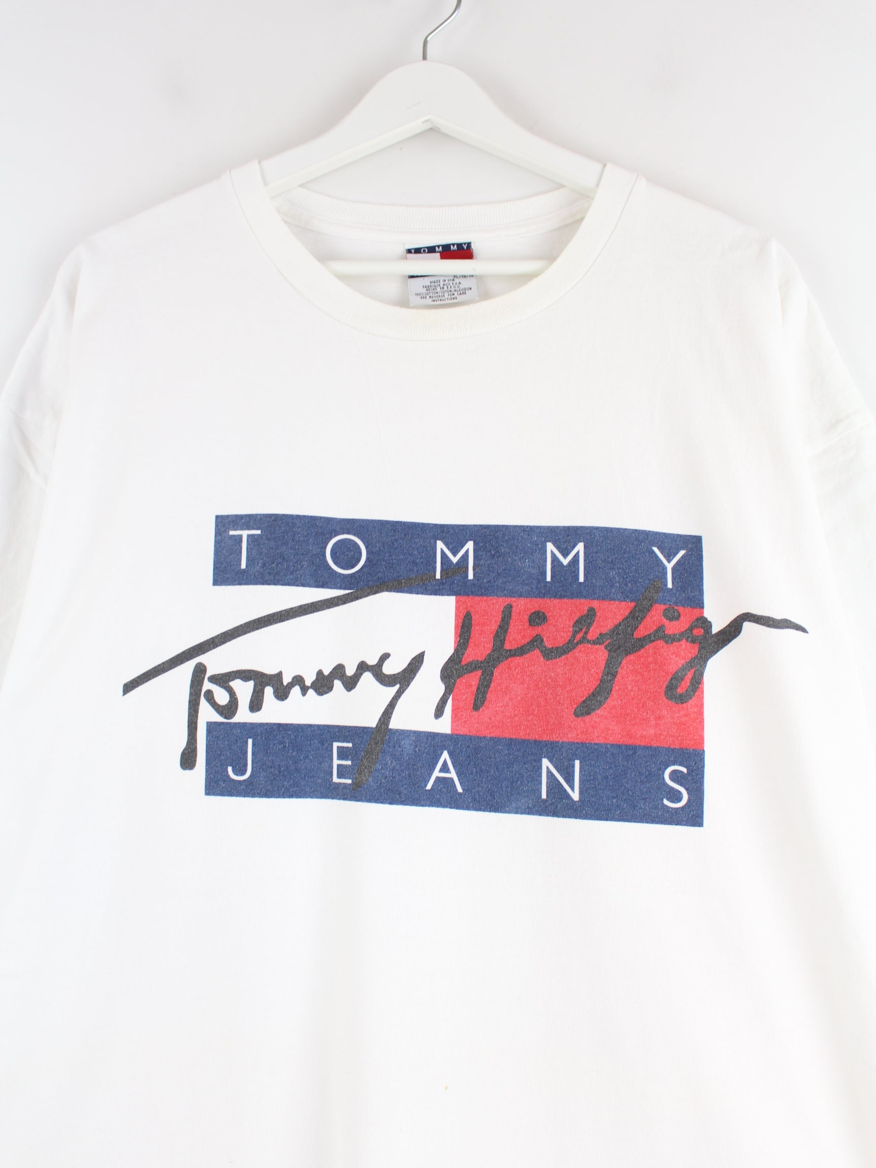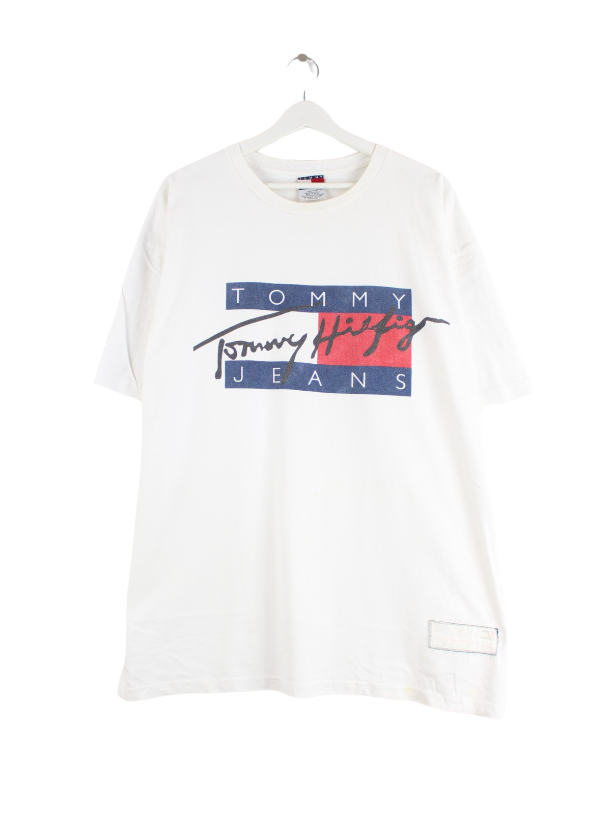 White T-shirt from the brand Tommy Hilfiger from the 90's in size XL. It is made of cotton and in good condition. With a great vintage print.