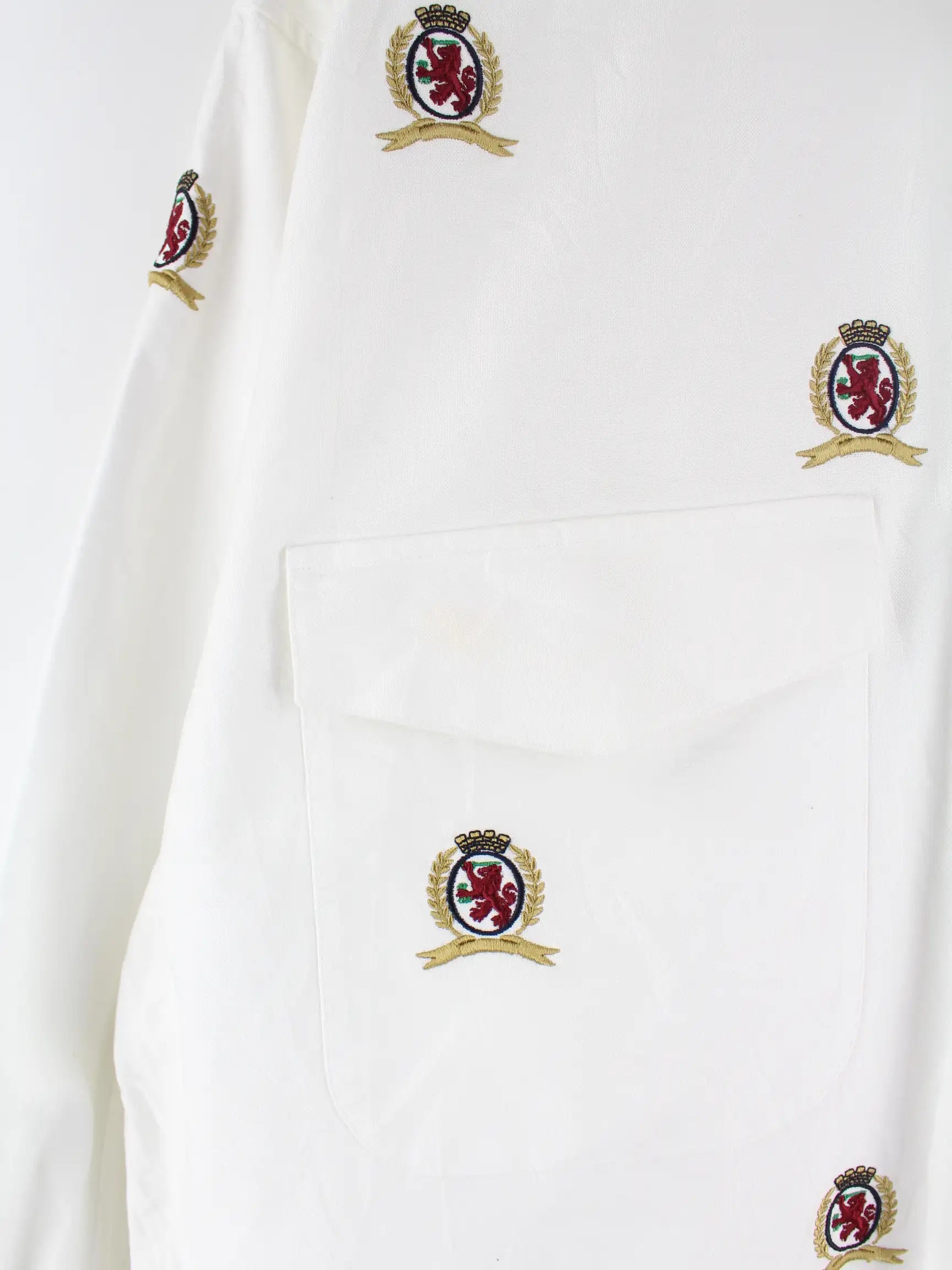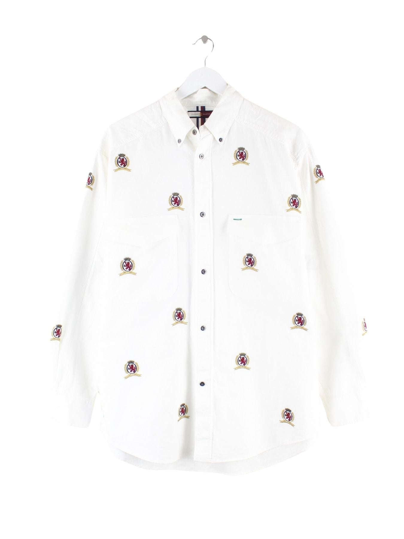 Weißes Freizeit Hemd mit Stickereien vom Brand Tommy Hilfiger aus Anfang der 2000'er in Größe XL. Es ist aus Baumwolle hergestellt und in gutem Zustand lieferbar.