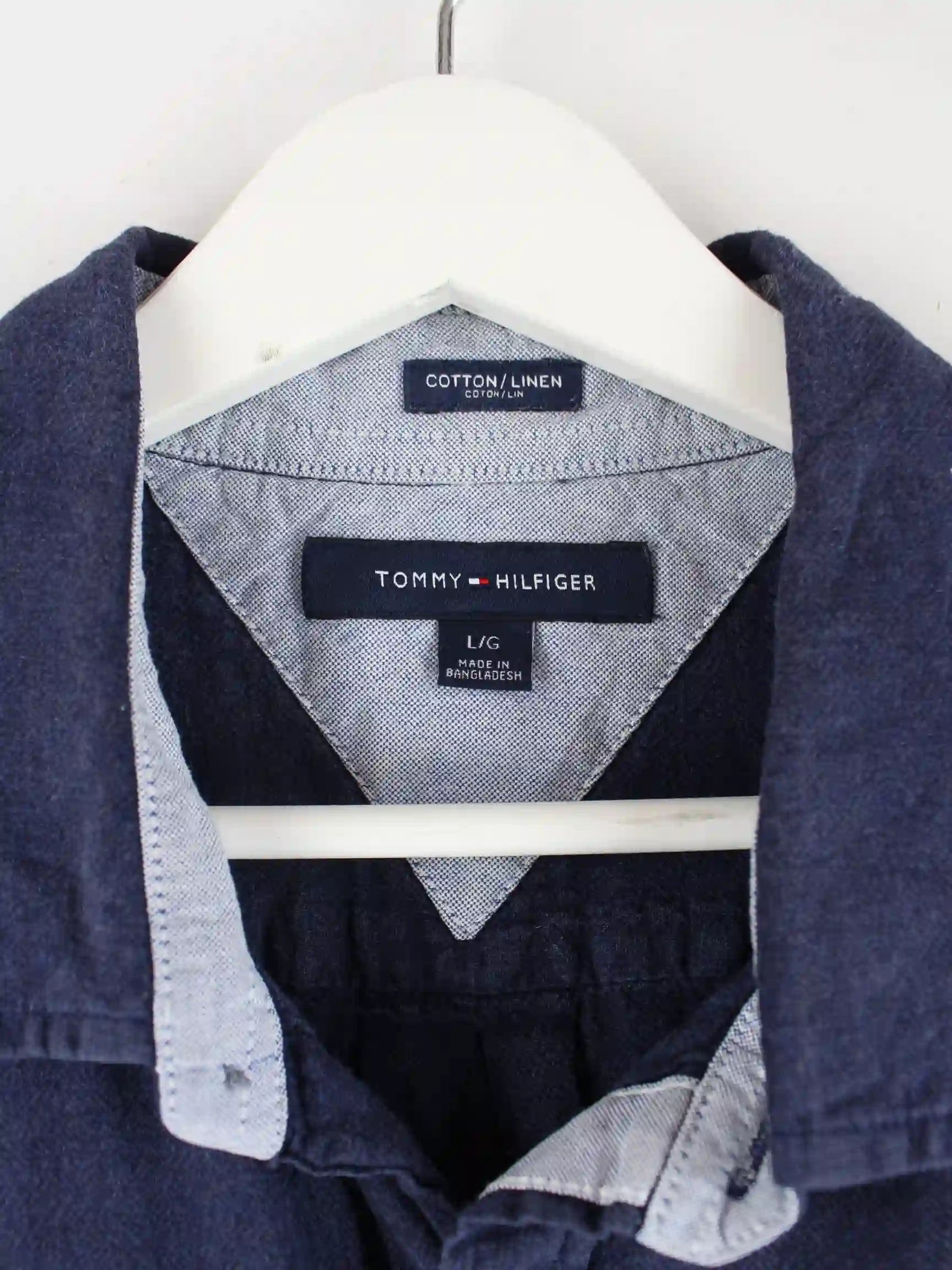 Blaues Freizeit Hemd vom Label Tommy Hilfiger in Größe L. Es ist aus einer Baumwollmischung und in sehr gutem Zustand in Stock.