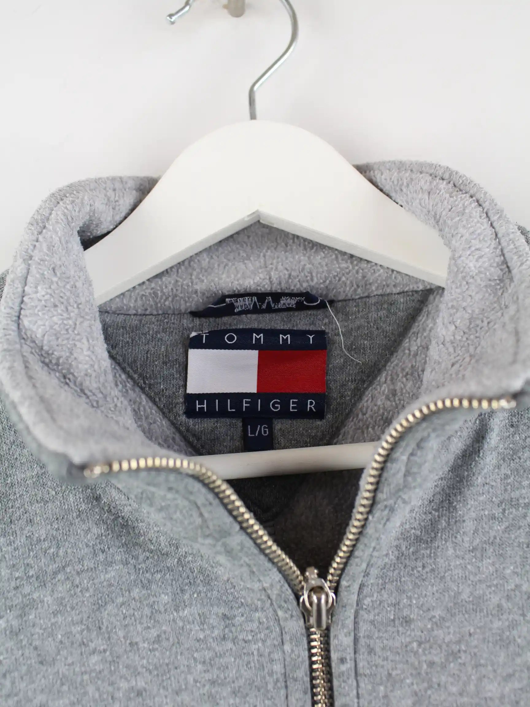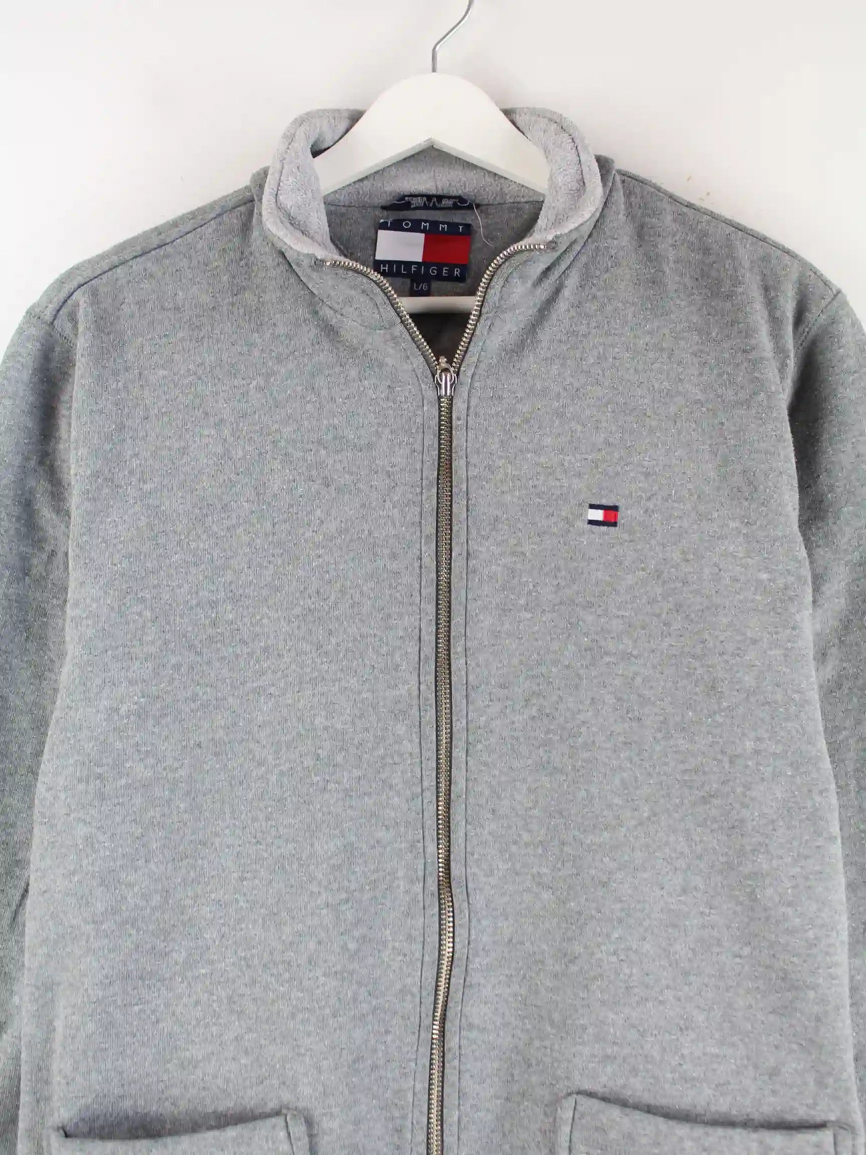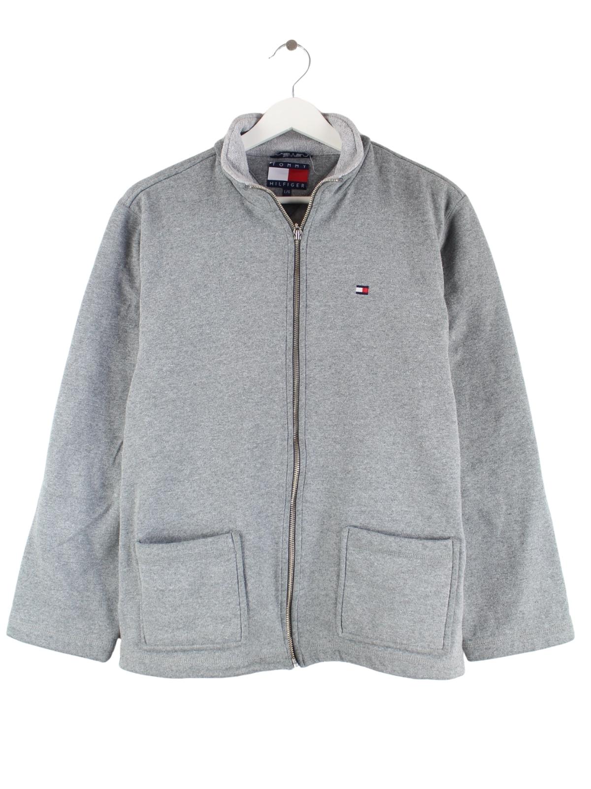 Sweatjacke von Tommy Hilfiger in Größe L aus den 90'ern. Sie ist aus einer Baumwollmischung angefertigt und in Grau vorrätig.