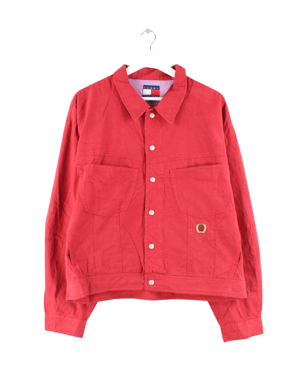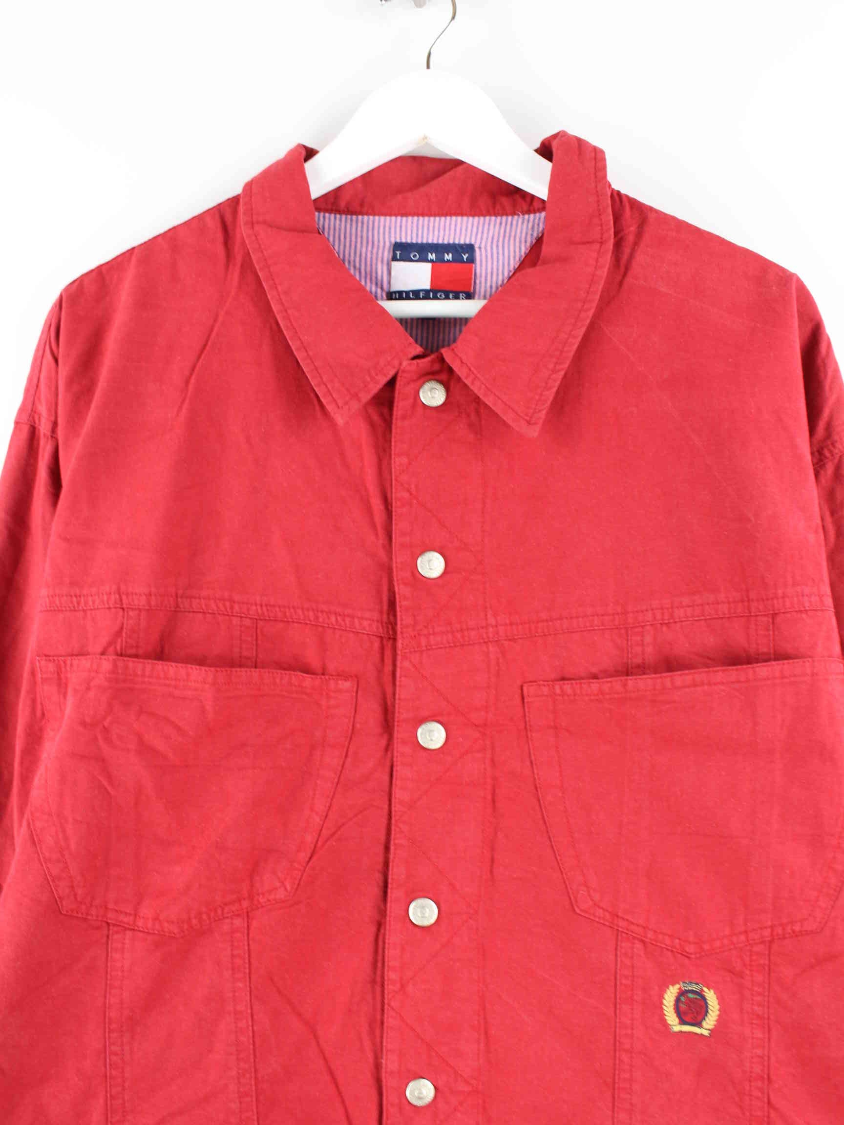 Red light jacket with embroidery from the brand Tommy Hilfiger from the 90's in size XL. It is made of cotton and is in very good condition.