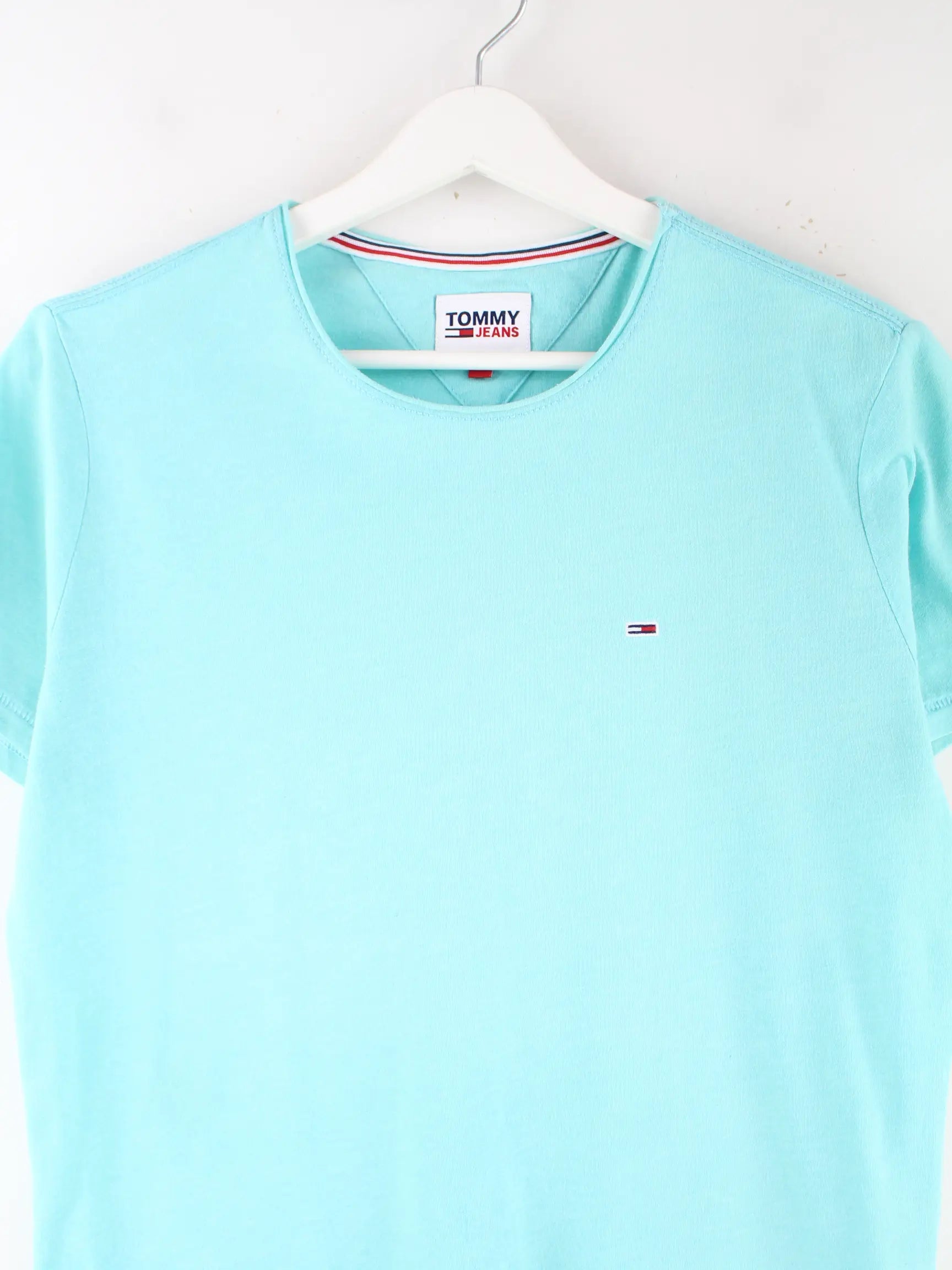 Türkisfarbenes T-Shirt vom Brand Tommy Hilfiger in Größe XS. Es ist aus Baumwolle hergestellt und in gutem Zustand im Bestand.