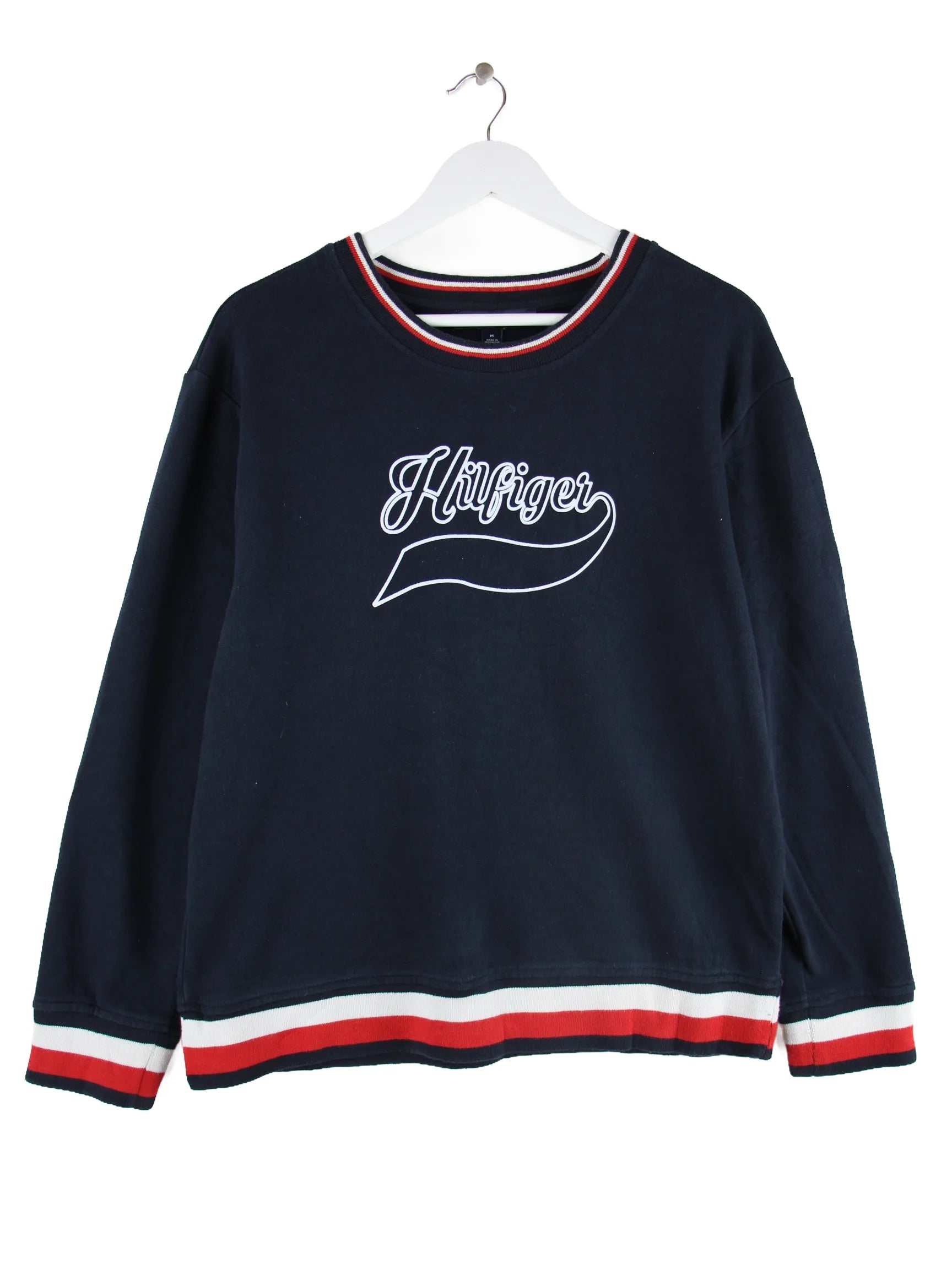 Blauer Sweater des Labels Tommy Hilfiger in Größe M. Er ist aus einer Baumwollmischung gemacht und in sehr gutem Zustand vorrätig. Mit chiquem Print.
