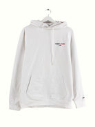 White hoodie with embroidered patterns from Tommy Hilfiger in size L. It is made from a cotton blend and is in stock in very good condition.