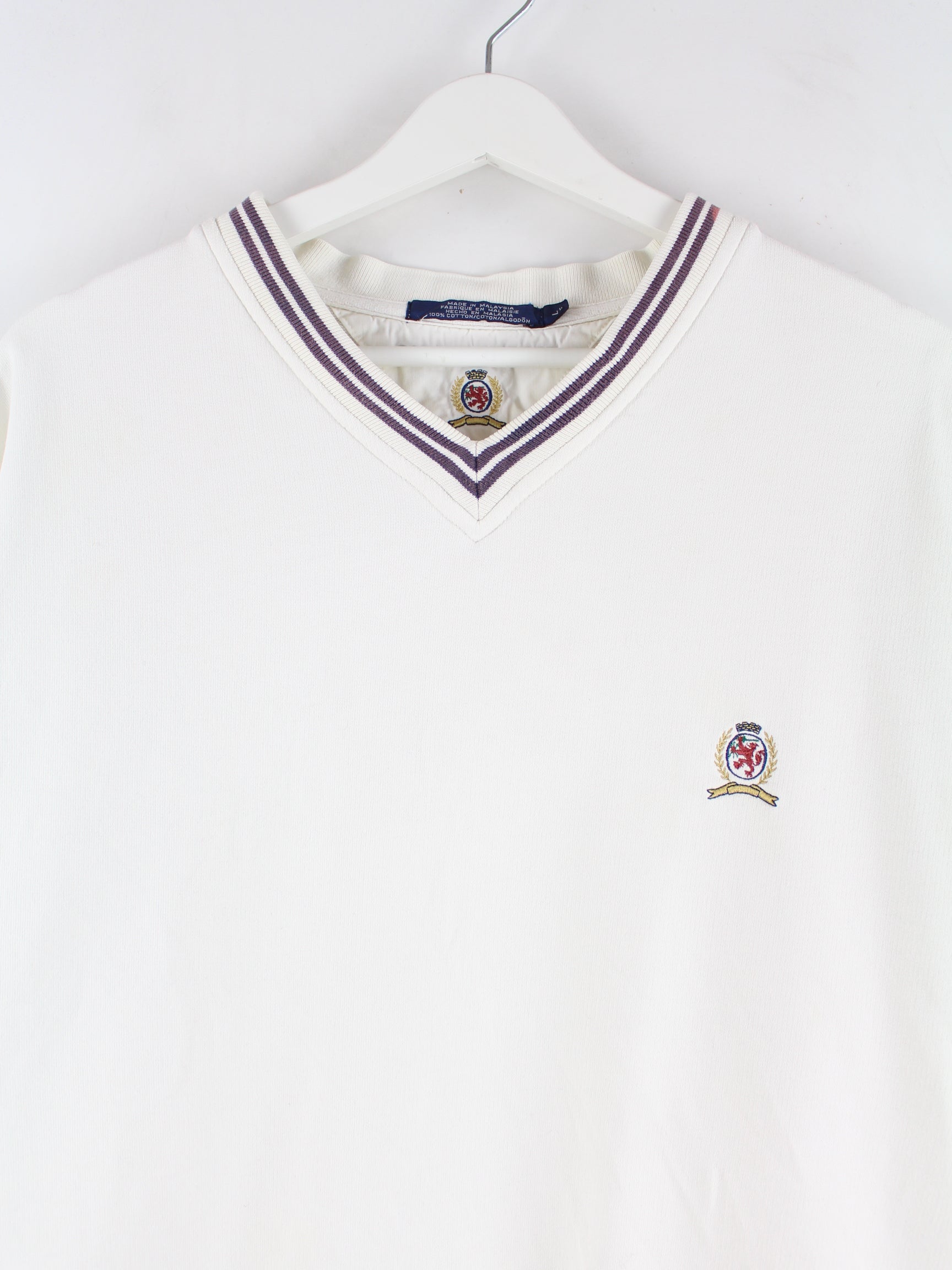 Tommy Hilfiger Embroidered V-Neck Sweater White L