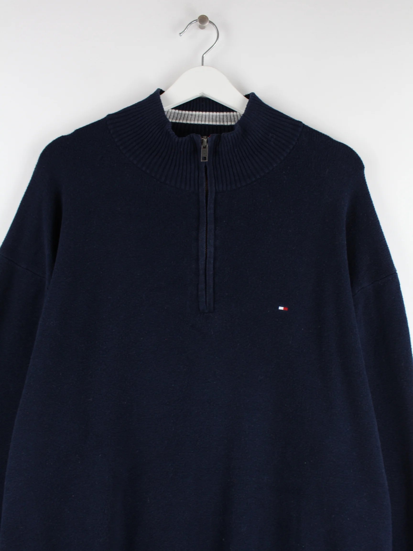 Pullover des Labels Tommy Hilfiger mit half Zip in Größe XXL. Er ist aus Baumwolle hergestellt und in Blau in Stock.