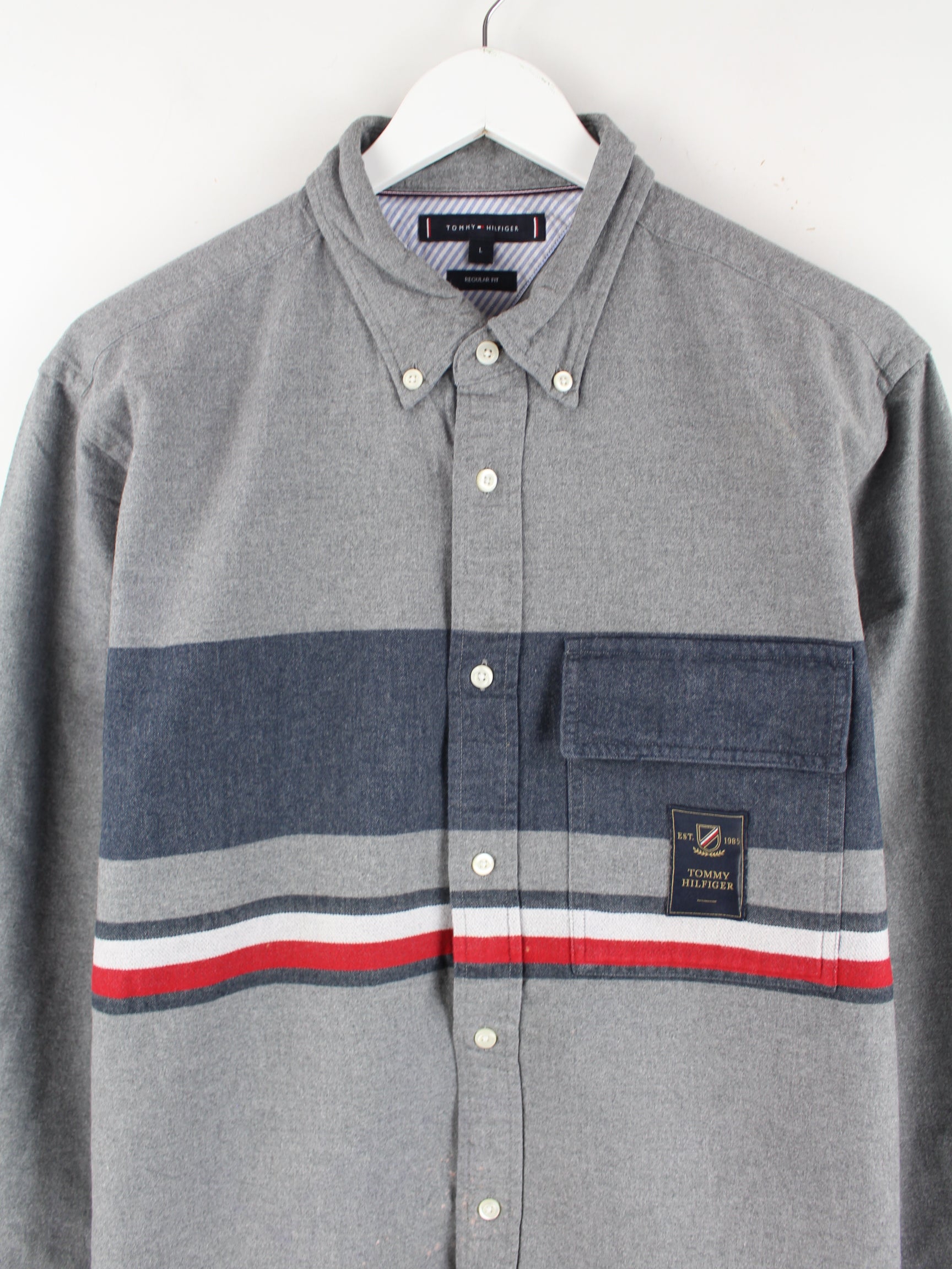 Graues Freizeit Hemd vom Brand Tommy Hilfiger in Größe L. Es ist aus Baumwolle angefertigt und in sehr gutem Zustand zu haben.