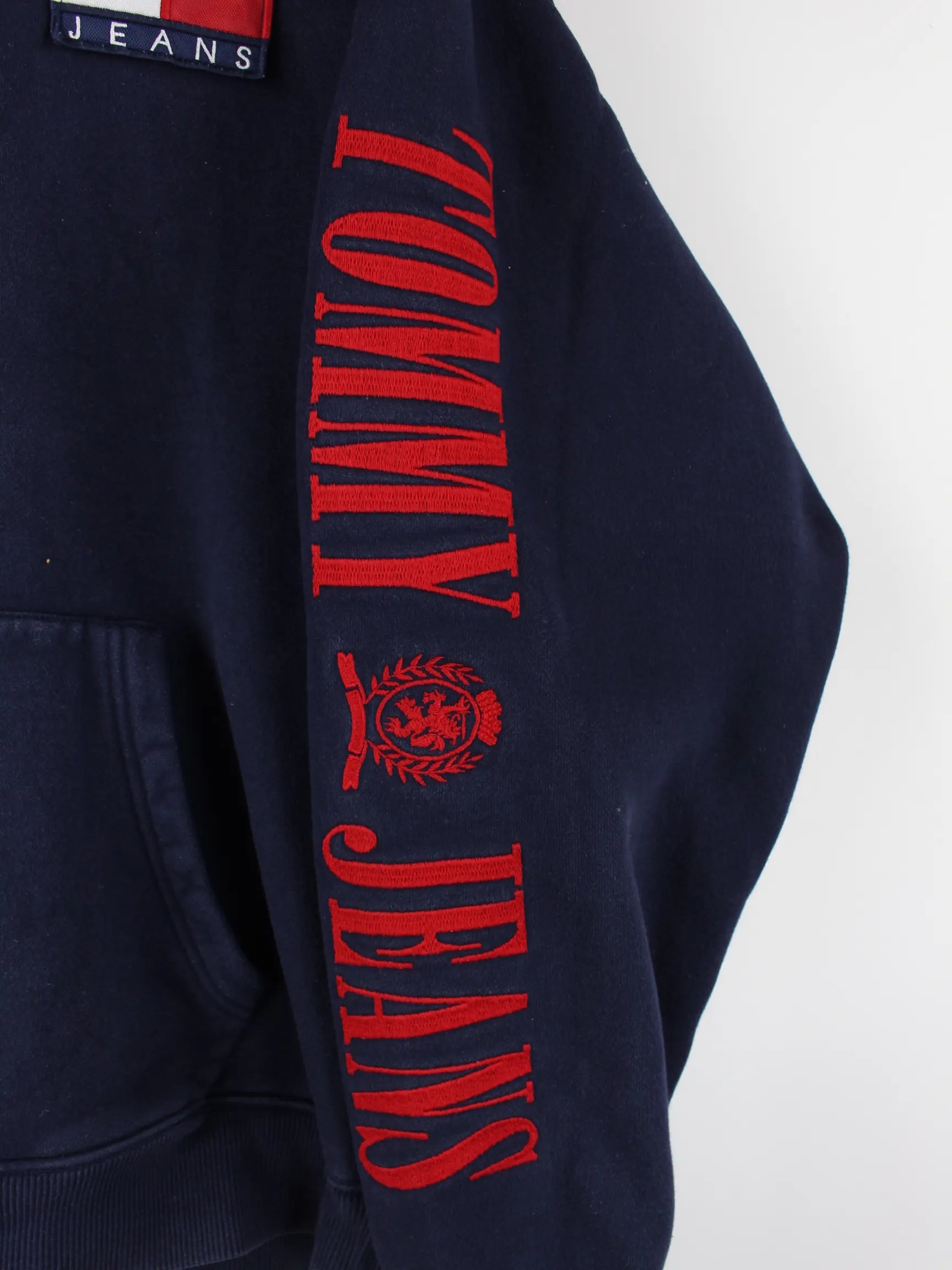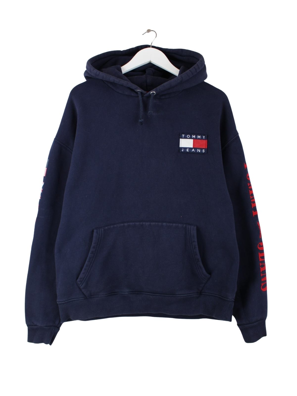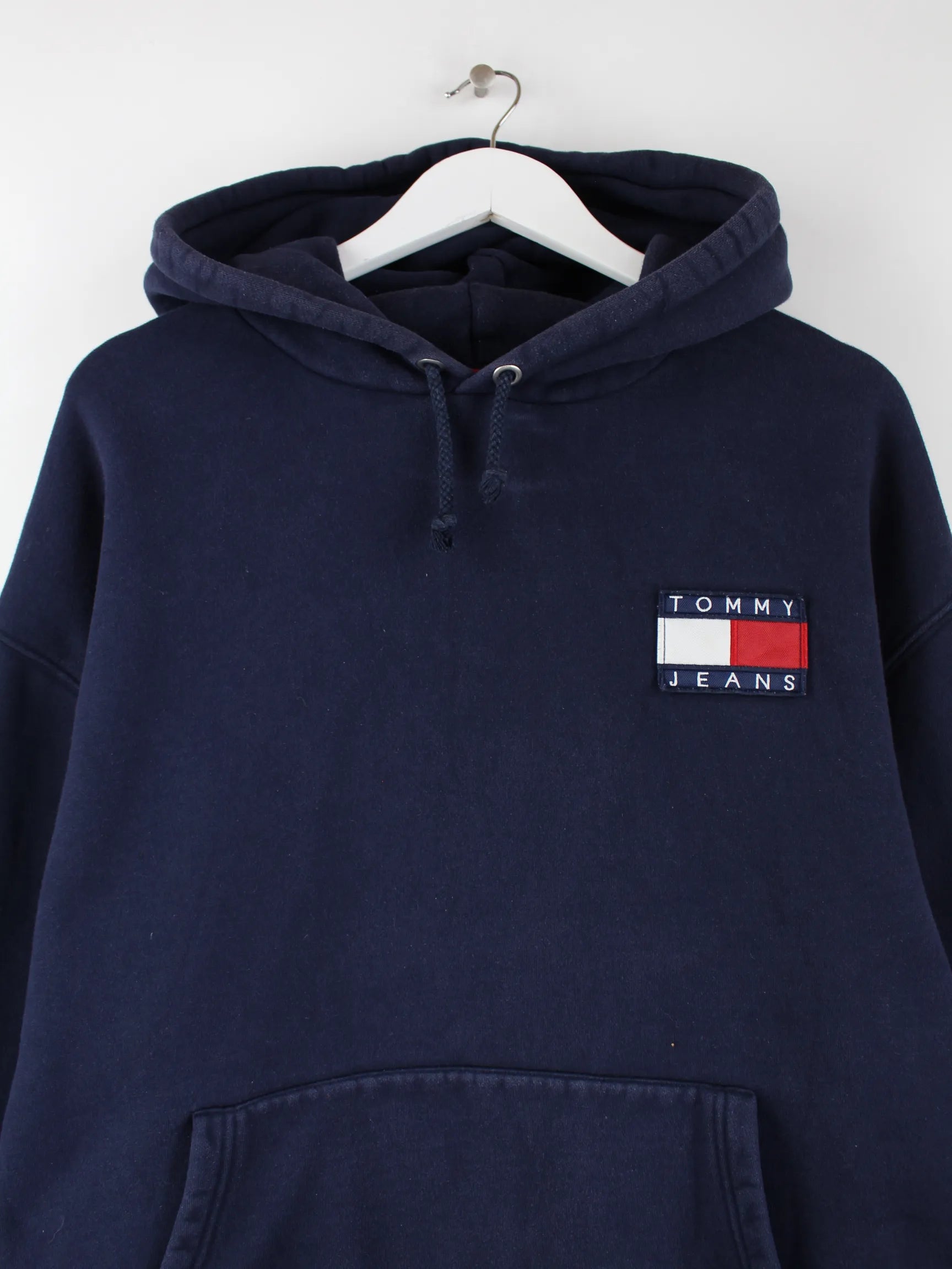 Blauer Big Flag Hoodie aus dem Hause Tommy Hilfiger in Größe XL. Er ist aus einer Baumwollmischung und in sehr gutem Zustand im Angebot.