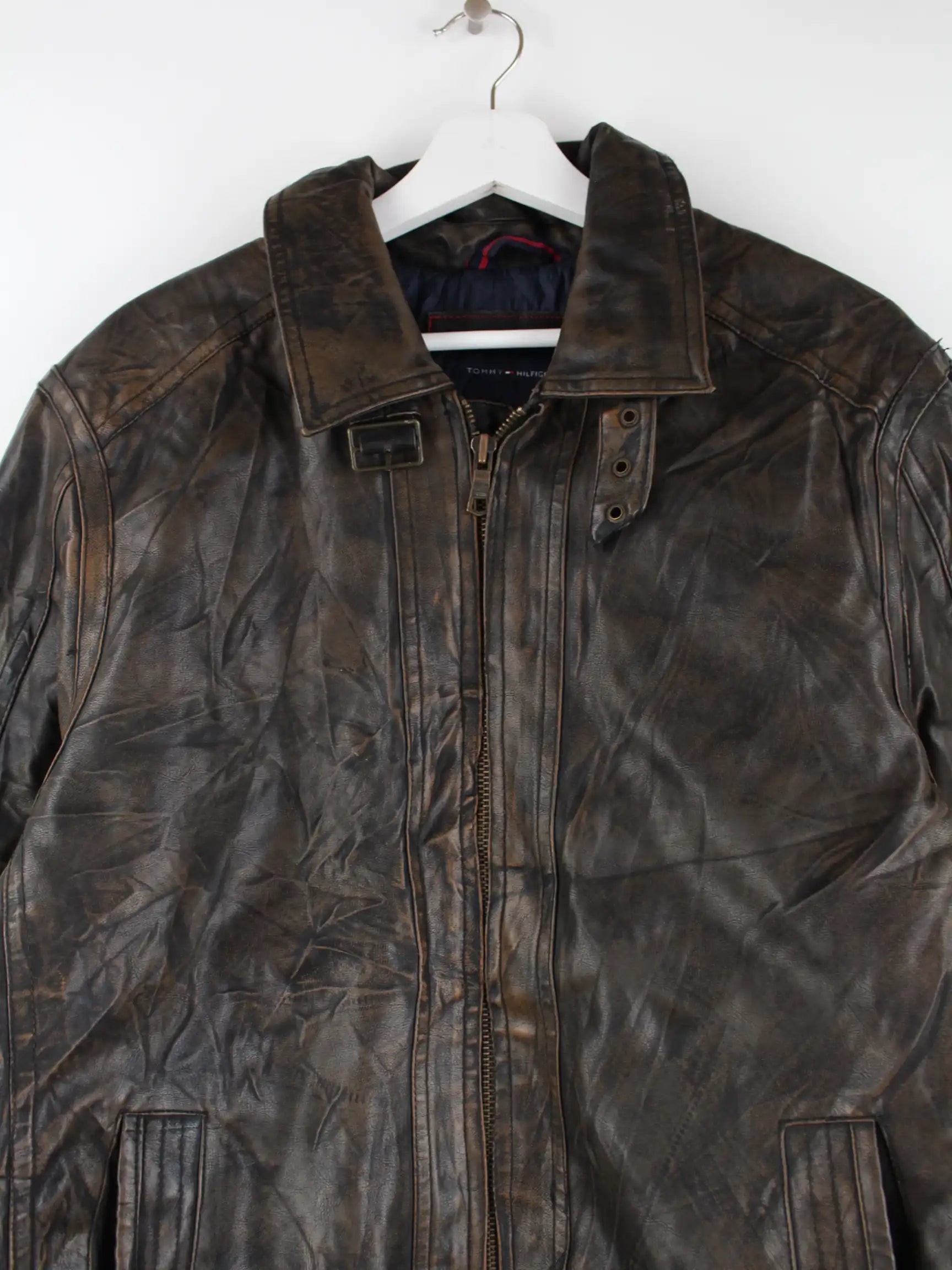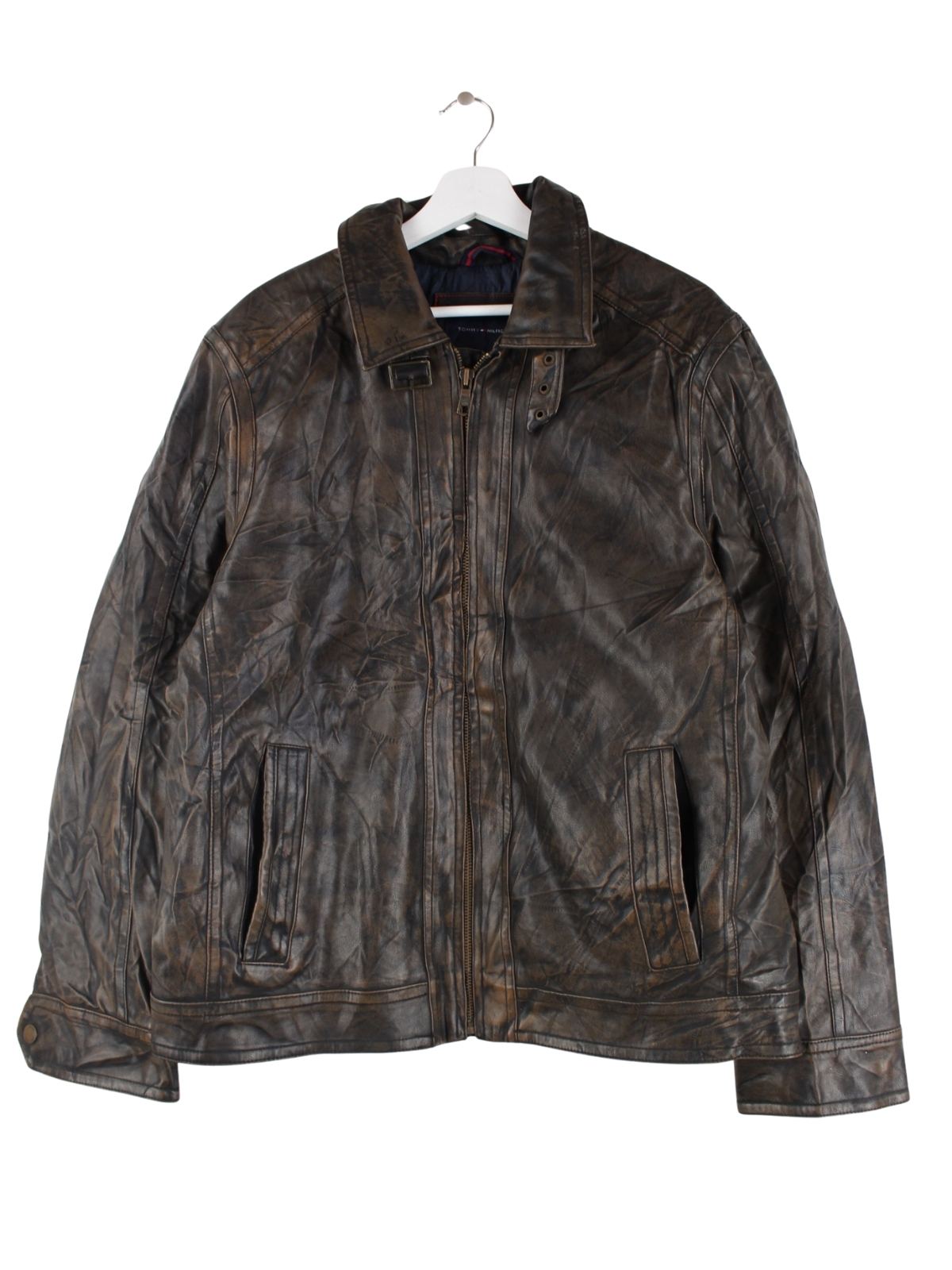 Jacke des Labels Tommy Hilfiger in Größe L. Sie ist aus Leder angefertigt und in Braun lieferbar.