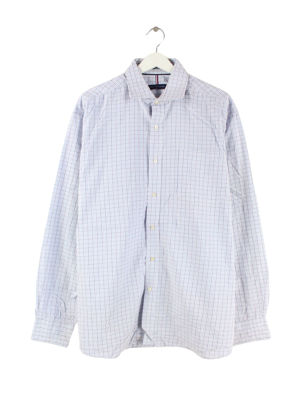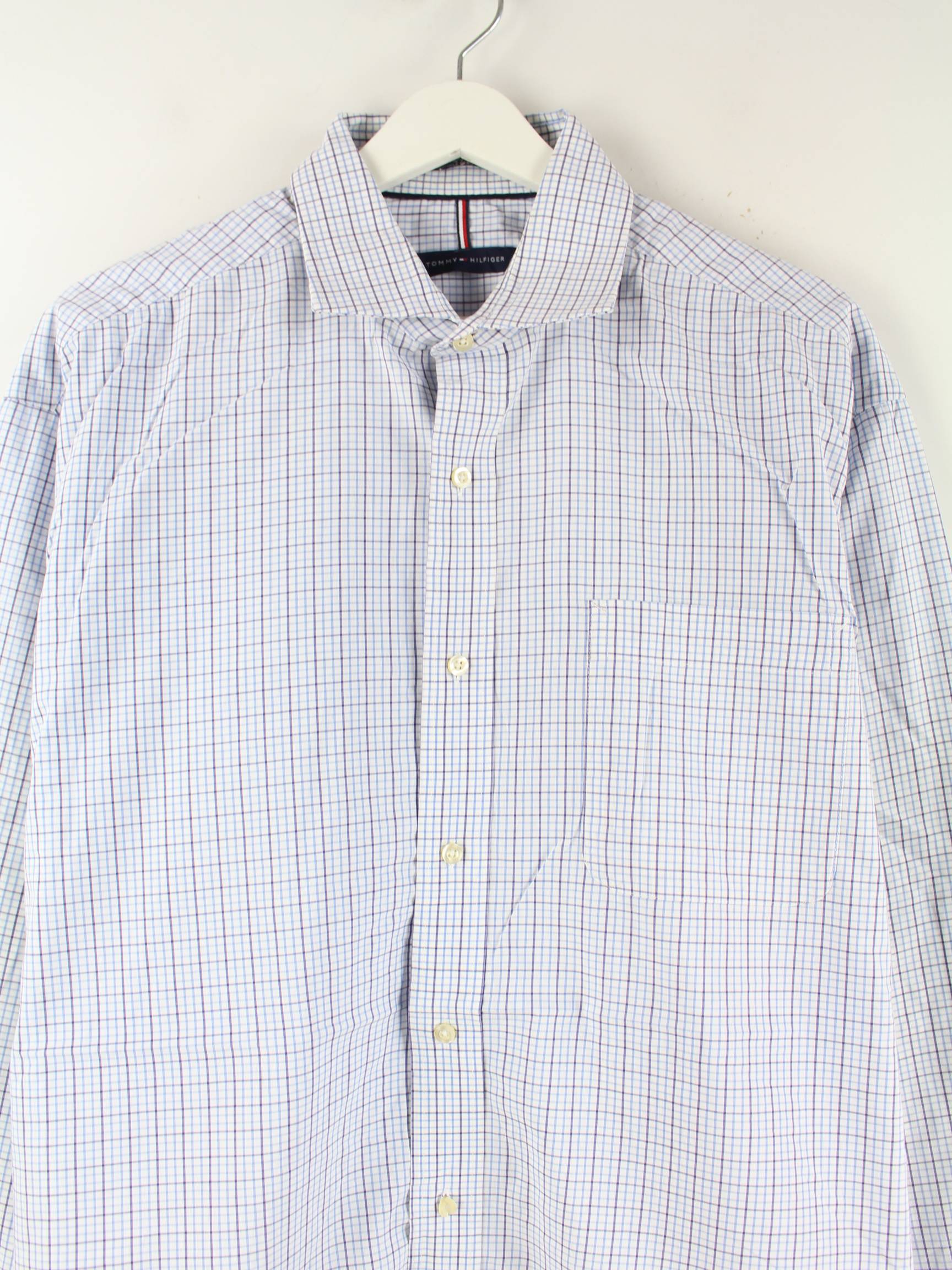 Hemd des Labels Tommy Hilfiger in Größe L. Es ist aus einer Baumwollmischung gemacht und in Blau bei uns vorrätig.