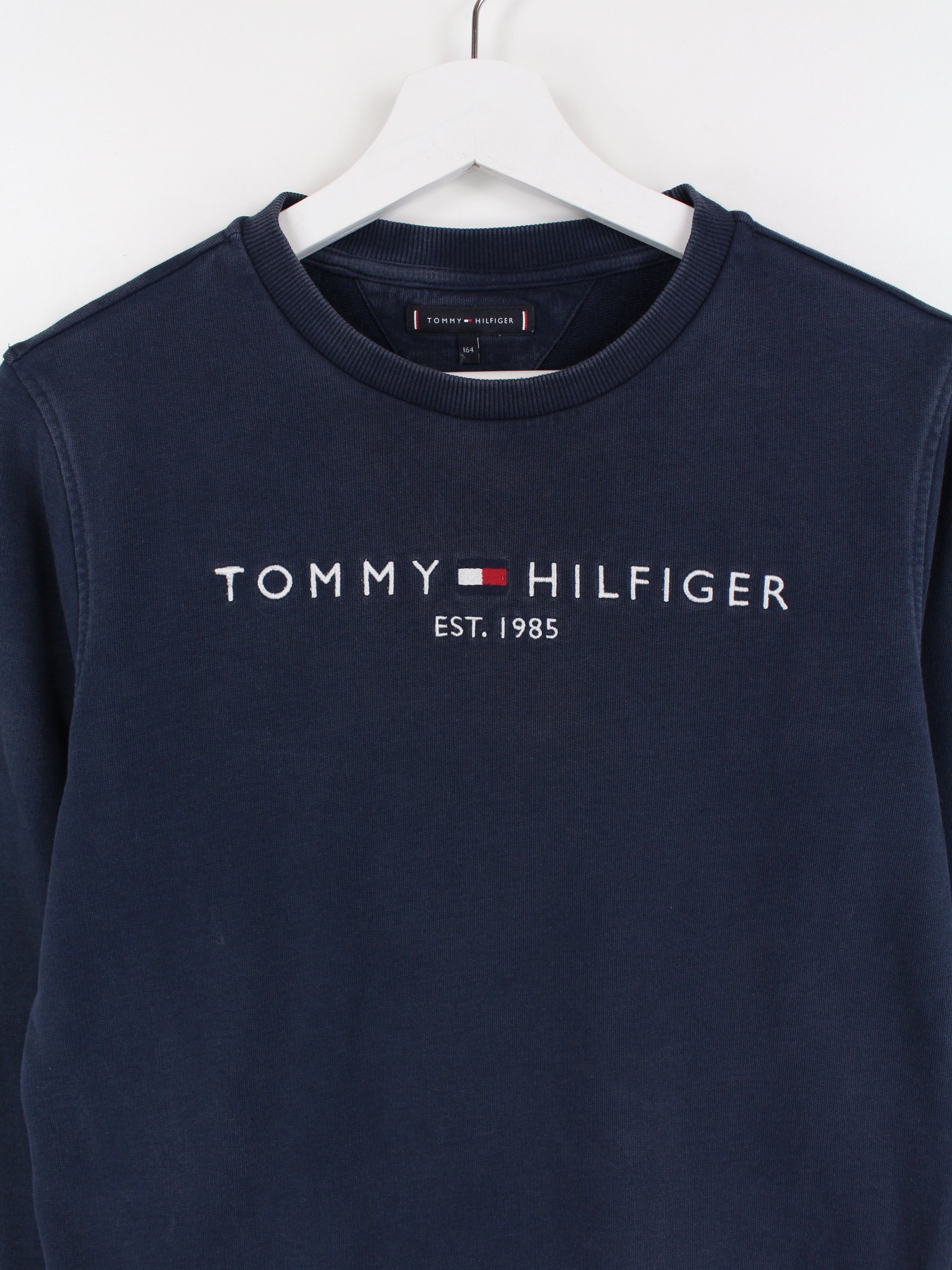 Blue Tommy Hilfiger sweater with embroidered logo.