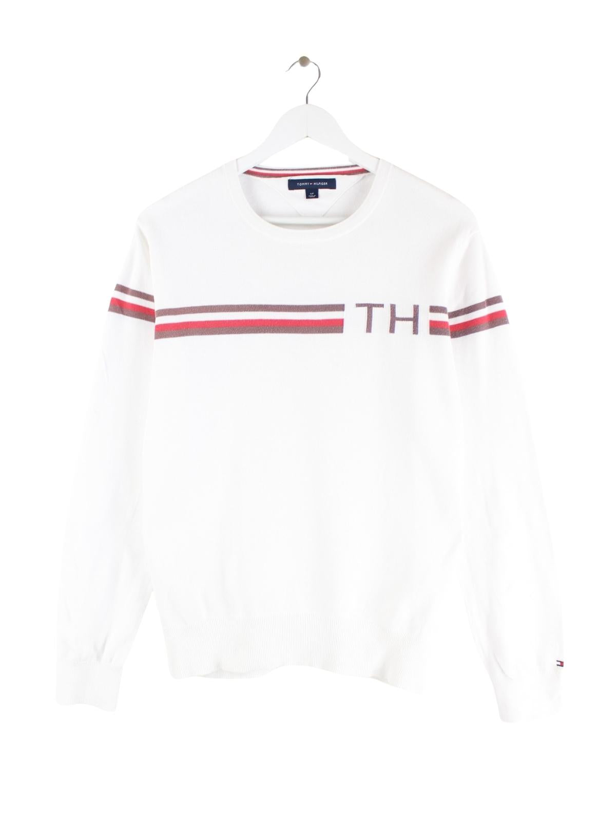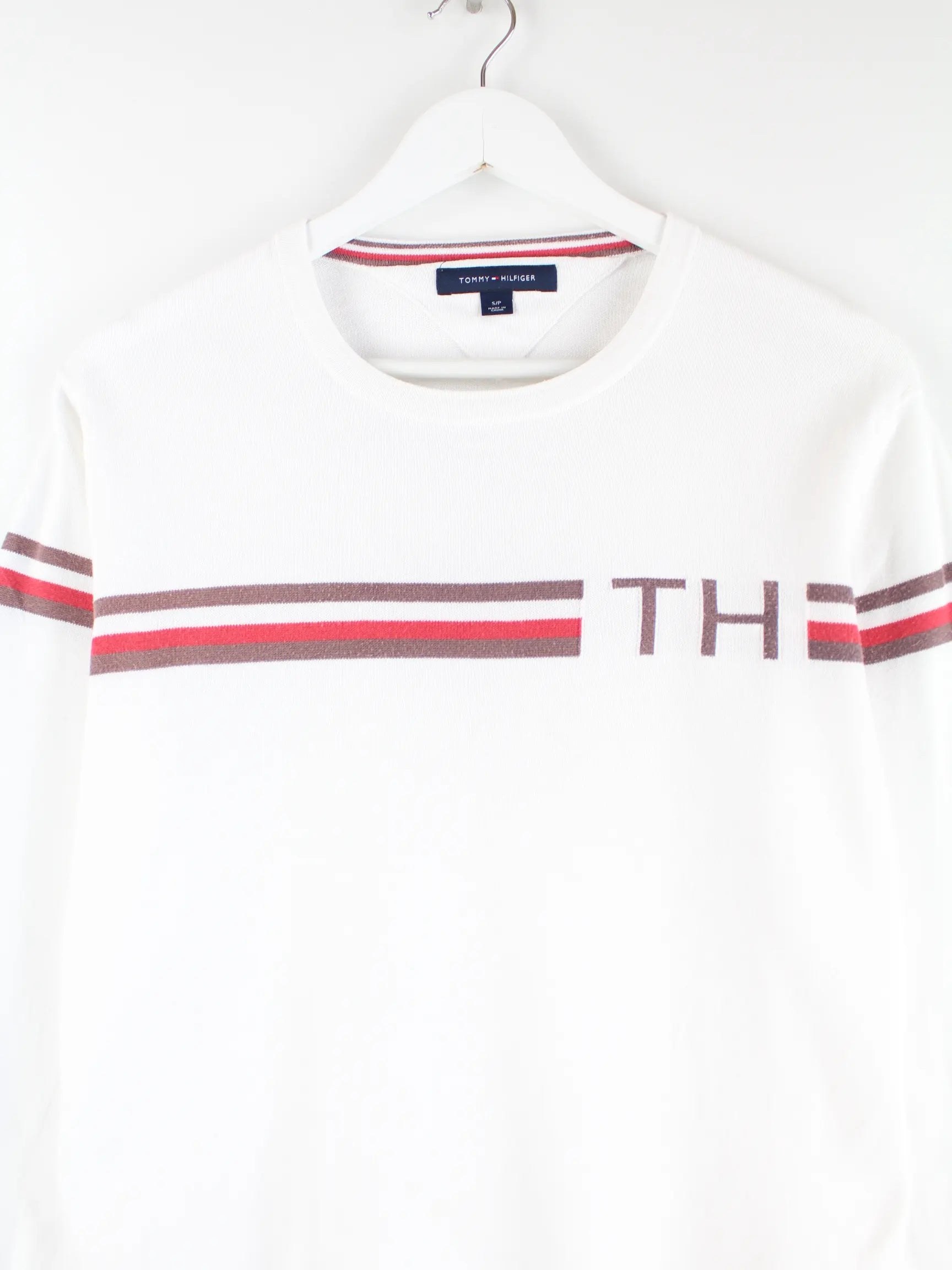 Weißer Sweater des Labels Tommy Hilfiger in Größe S. Er ist aus einer Baumwollmischung angefertigt und in gutem Zustand bei uns zu bekommen.