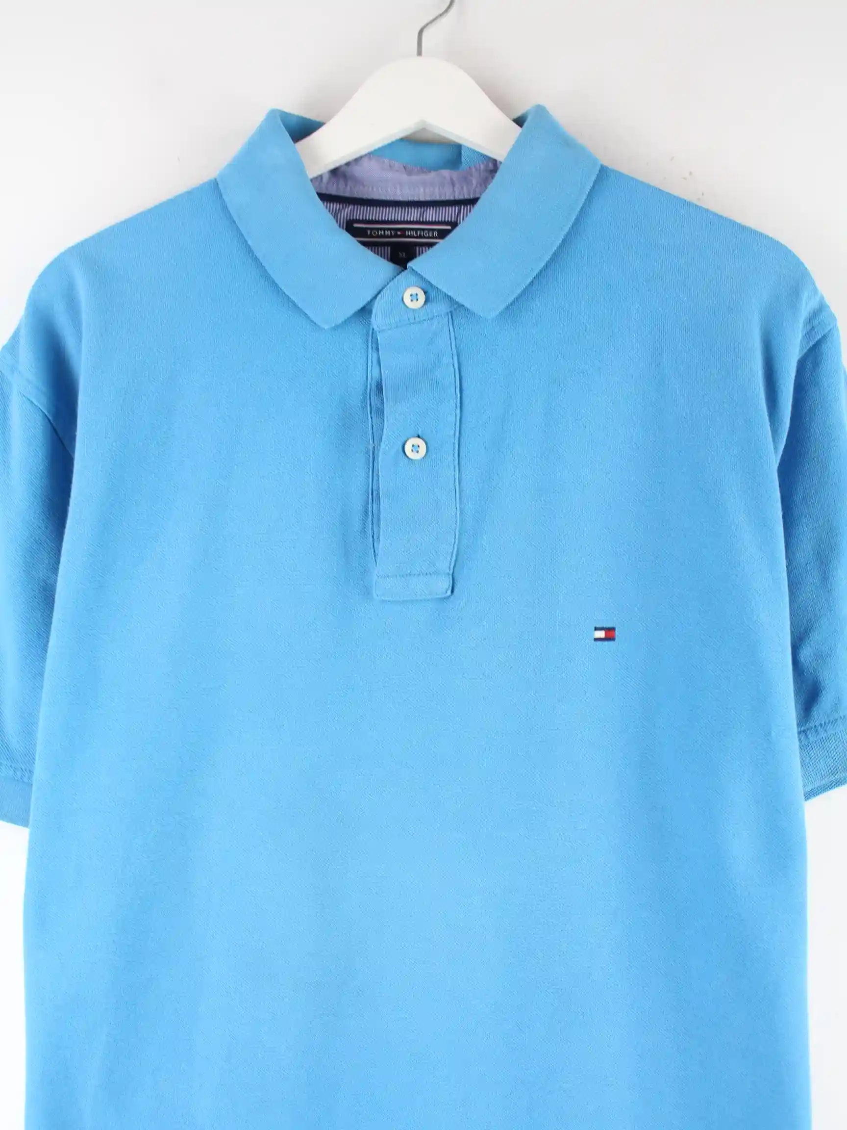 Poloshirt aus dem Hause Tommy Hilfiger in Größe XL. Es ist aus Baumwolle gefertigt und in Blau in Stock.