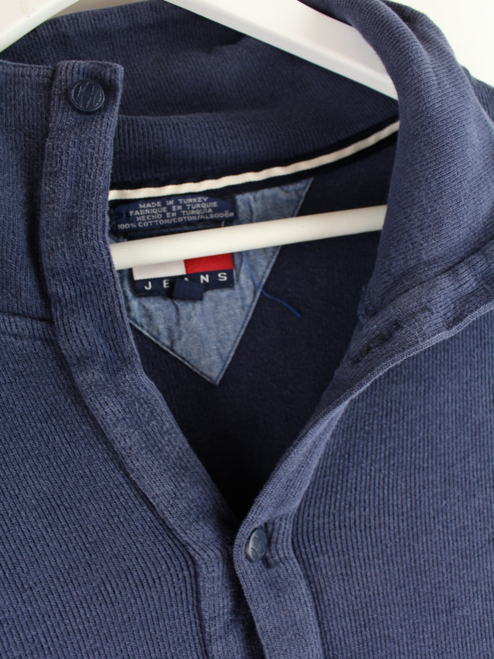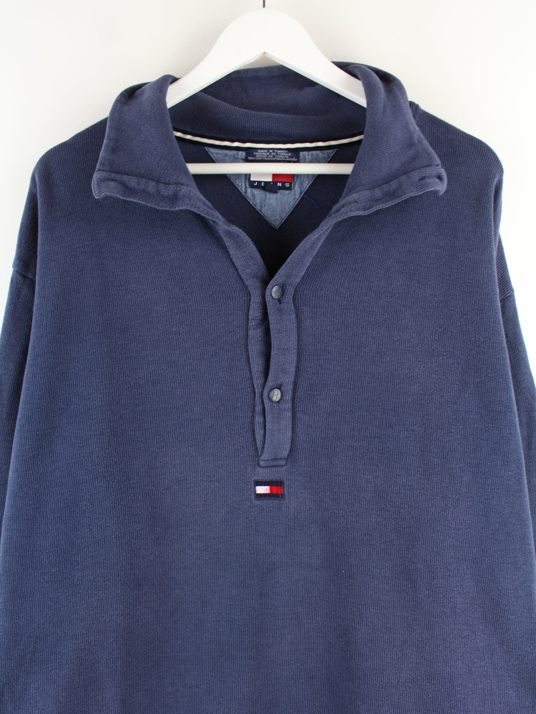Sweater from the Tommy Hilfiger label in size XL from the early 2000s. It is made of a cotton blend and is available in blue.