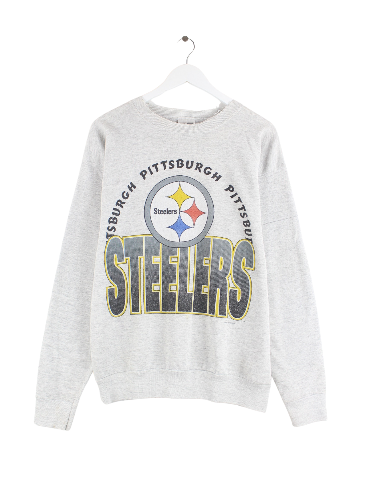Sweater from the Tultex label in size M. It is made from a cotton blend and is available in grey. With a chic Steelers print.