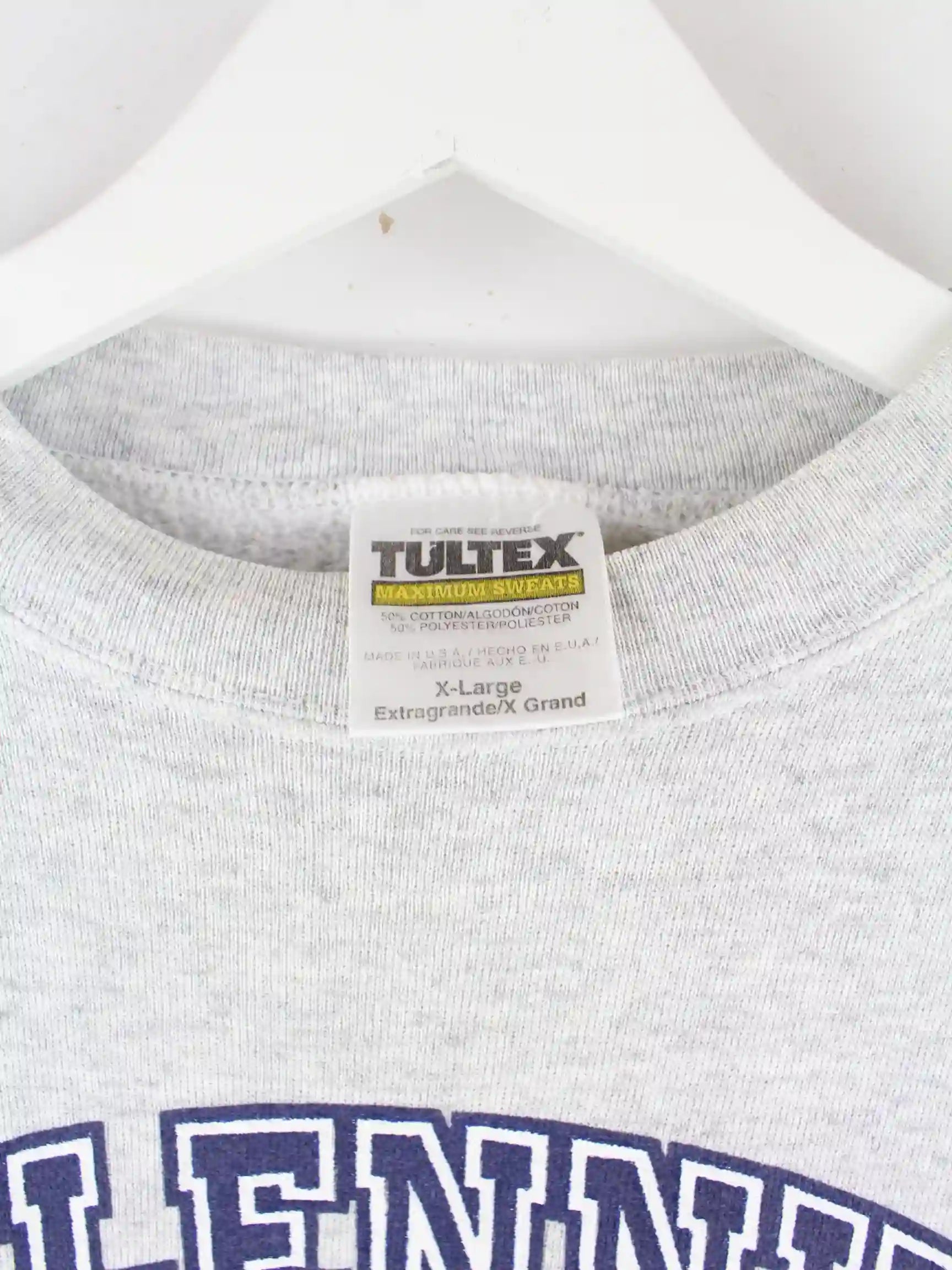 Sweater vom Brand Tultex in Größe XL aus den 90'ern. Er ist aus einer Baumwollmischung produziert und in Grau zu bekommen. Mit chiquem Club Print.