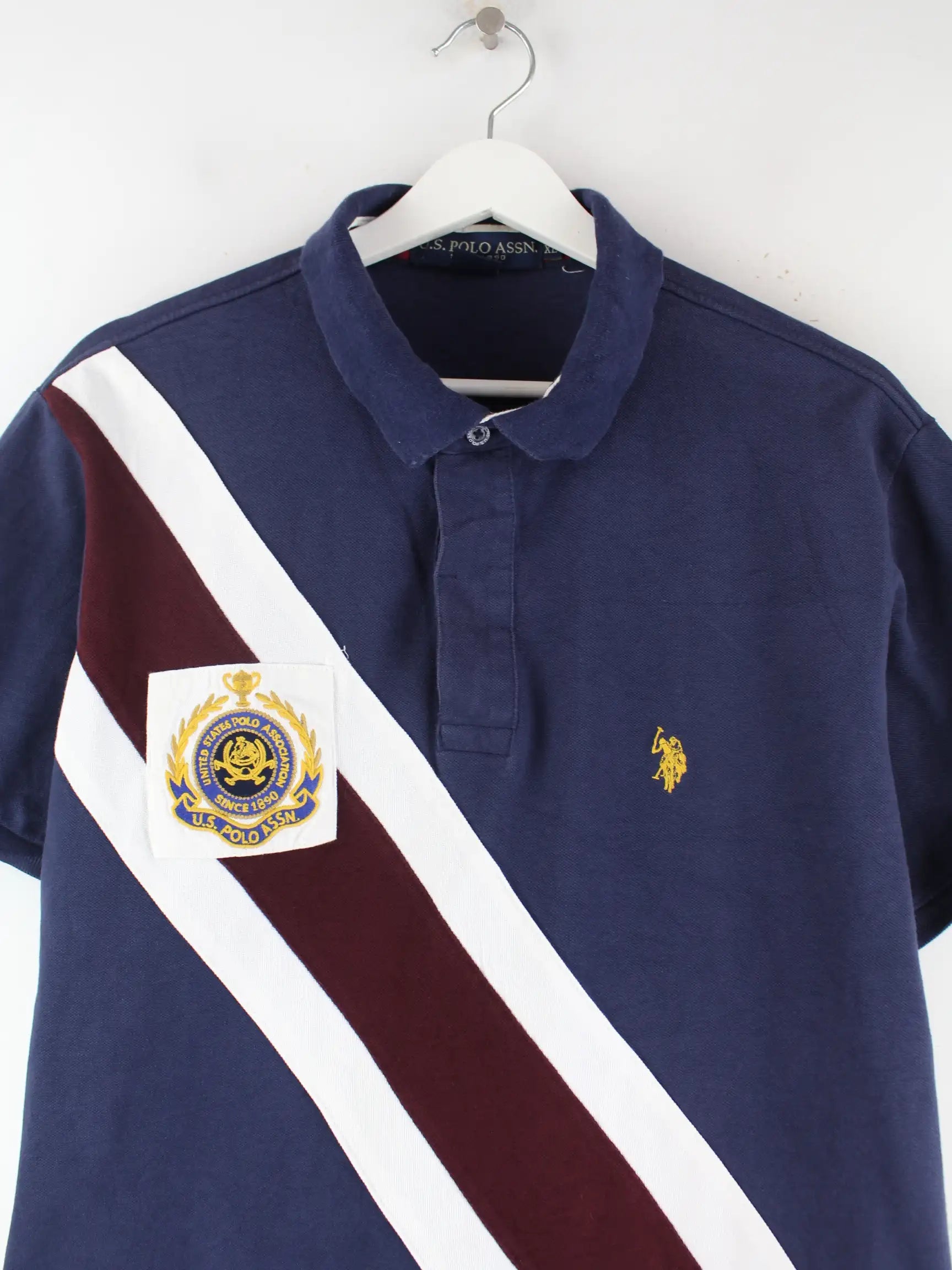 Blaues Poloshirt mit Stick der Brand U.S. Polo ASSN. in Größe XL. Es ist aus Baumwolle produziert und in sehr gutem Zustand bei uns vorrätig.