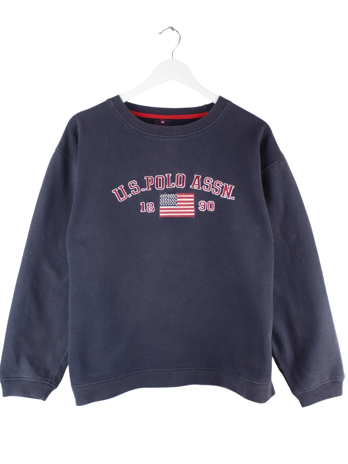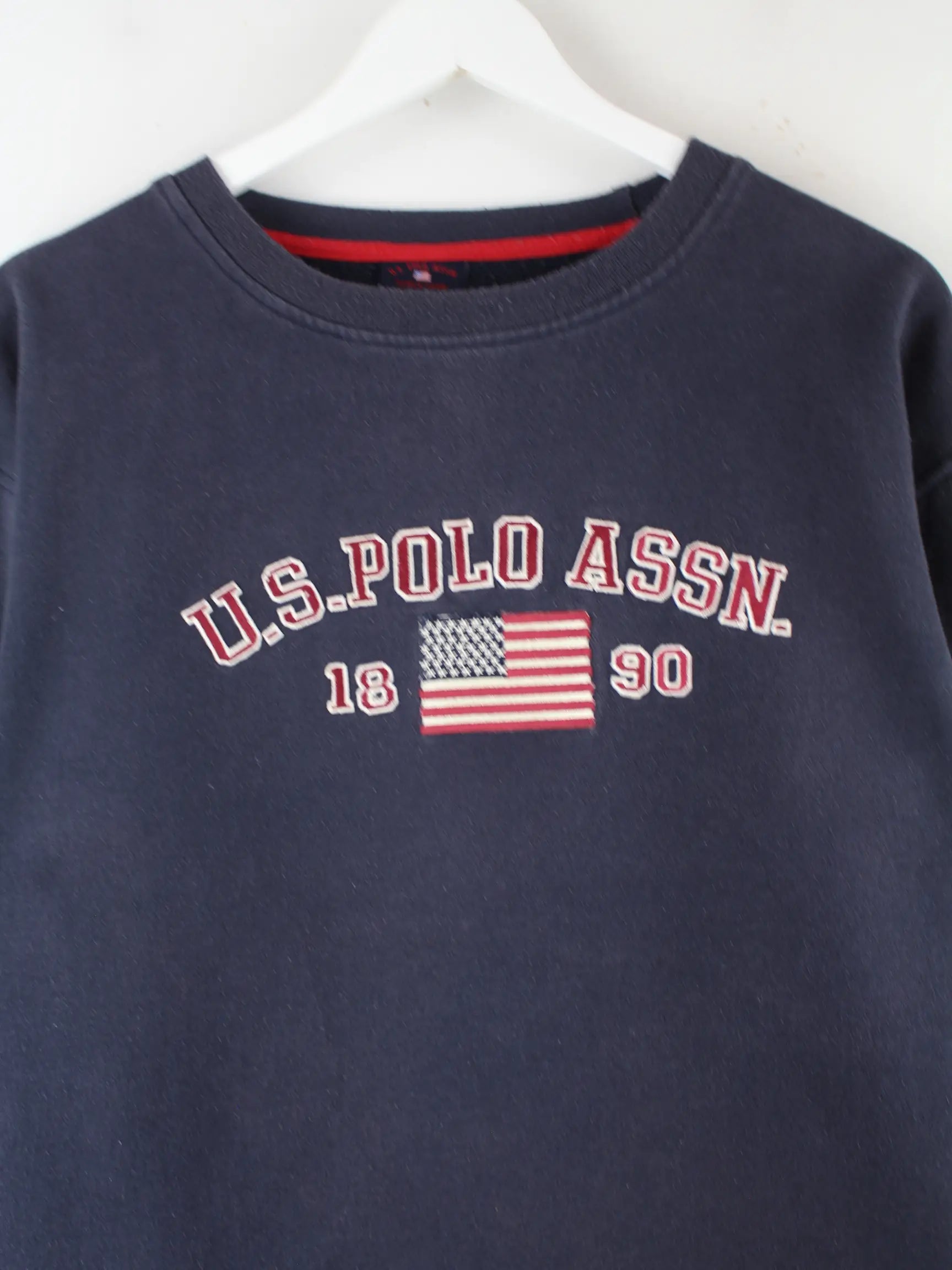 Sweater vom Label U.S. Polo ASSN. mit Stickereien in Größe L. Er ist aus einer Baumwollmischung gefertigt und in Blau bei uns zu bekommen.