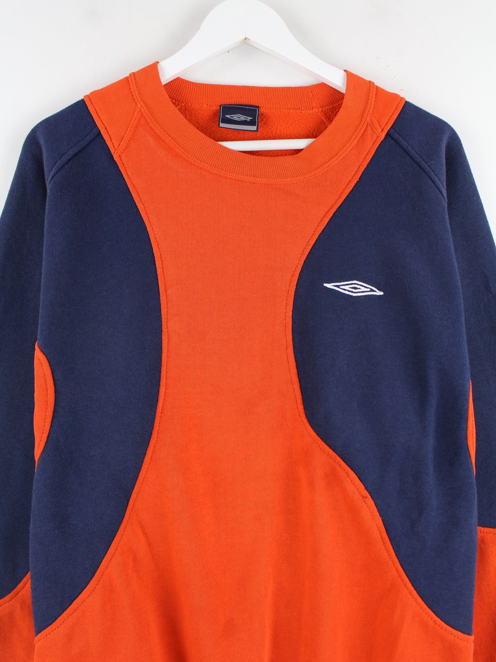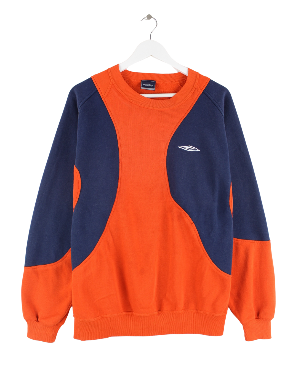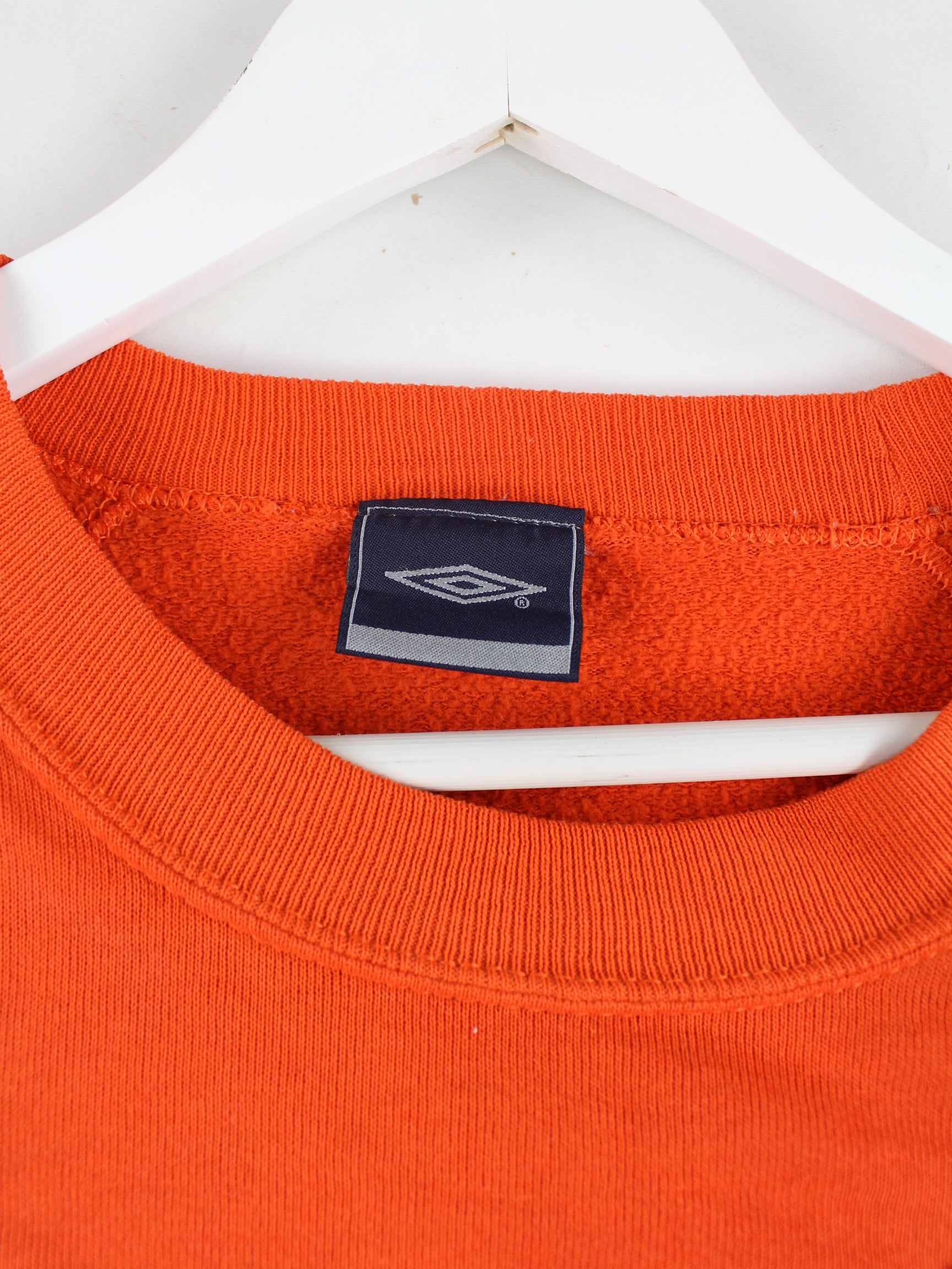 Orangefarbener Sweater mit Stick der Brand Umbro in Größe M. Er ist aus einer Baumwollmischung gemacht und in gutem Zustand lieferbar.