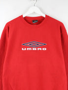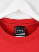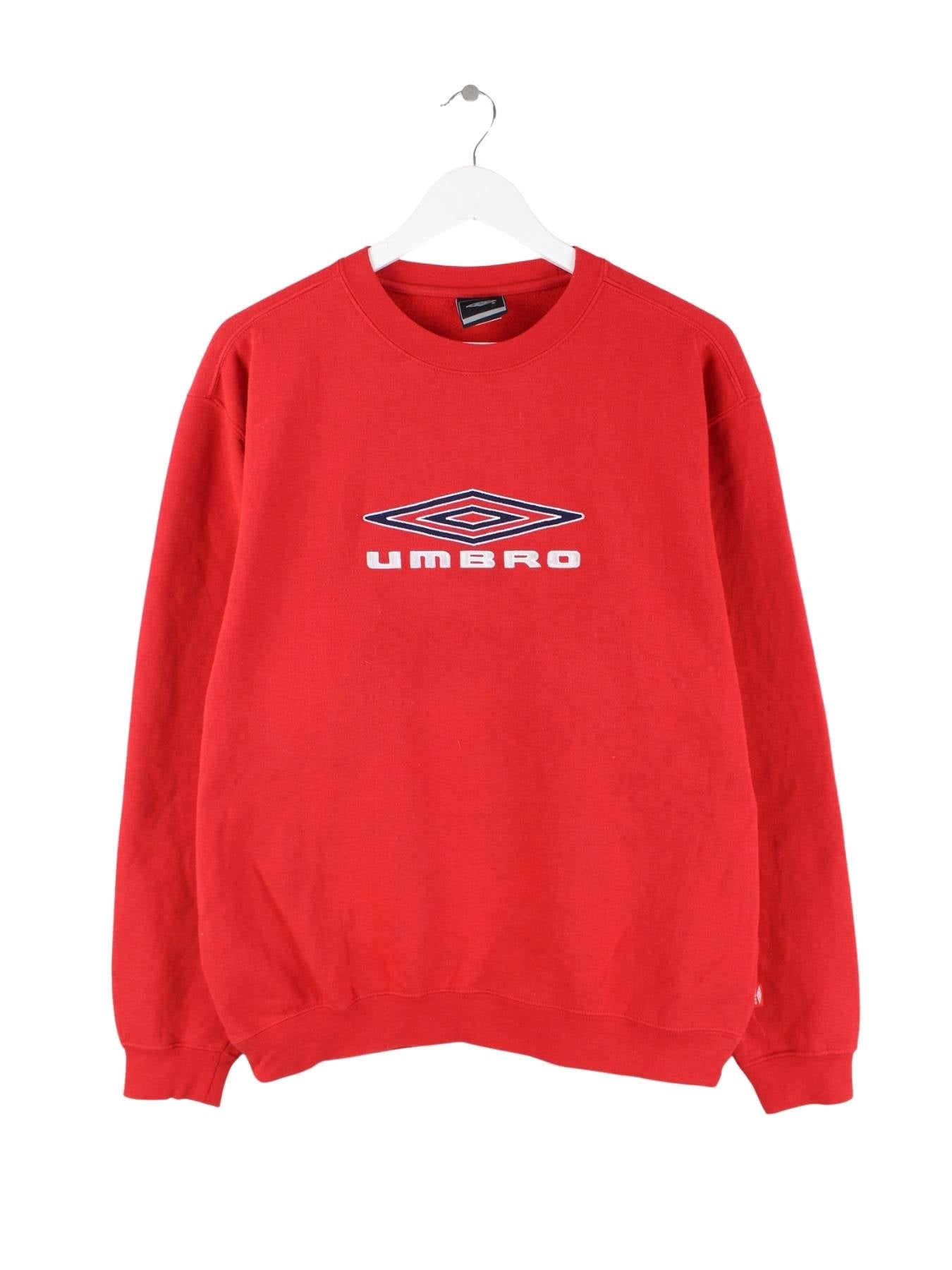 Roter Sweater mit Stickereien von Umbro in Größe L. Er ist aus einer Baumwollmischung gemacht und in sehr gutem Zustand zu haben.