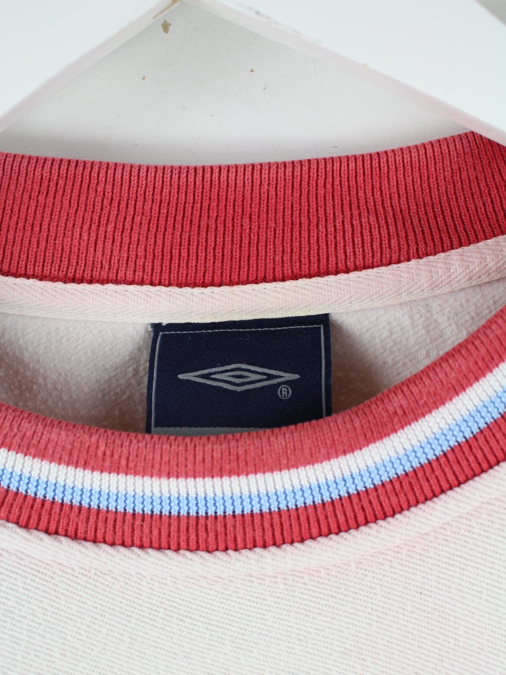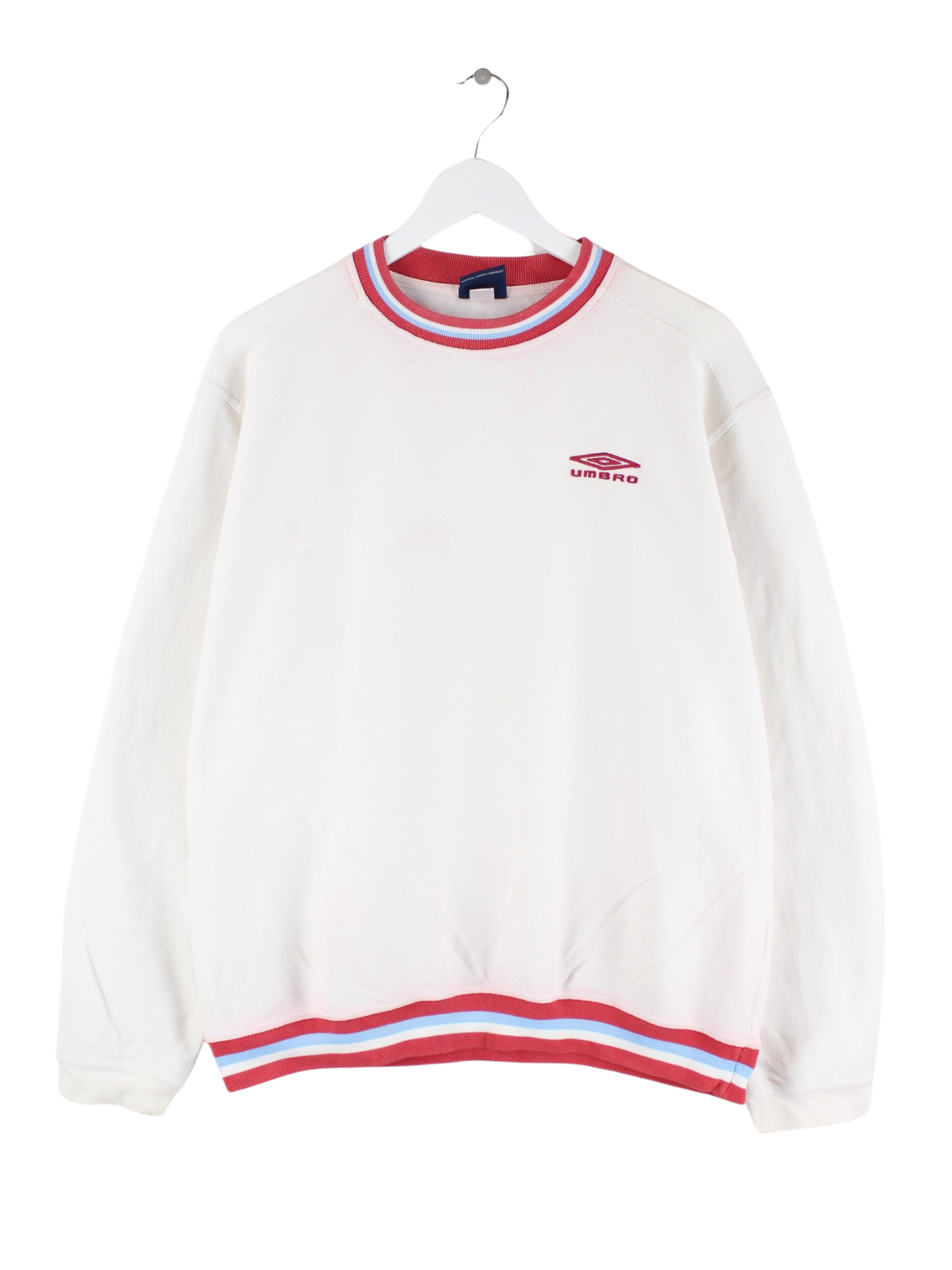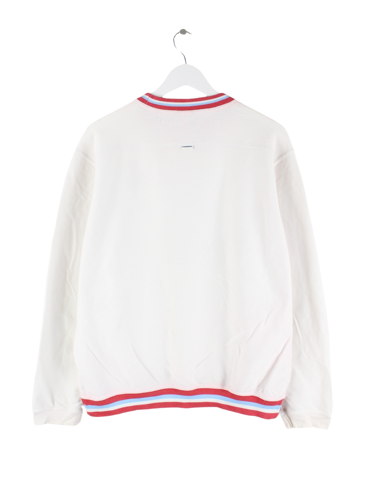 Sweater von Umbro mit Stickereien in Größe L. Er ist aus einer Baumwollmischung hergestellt und in Weiß im Bestand.