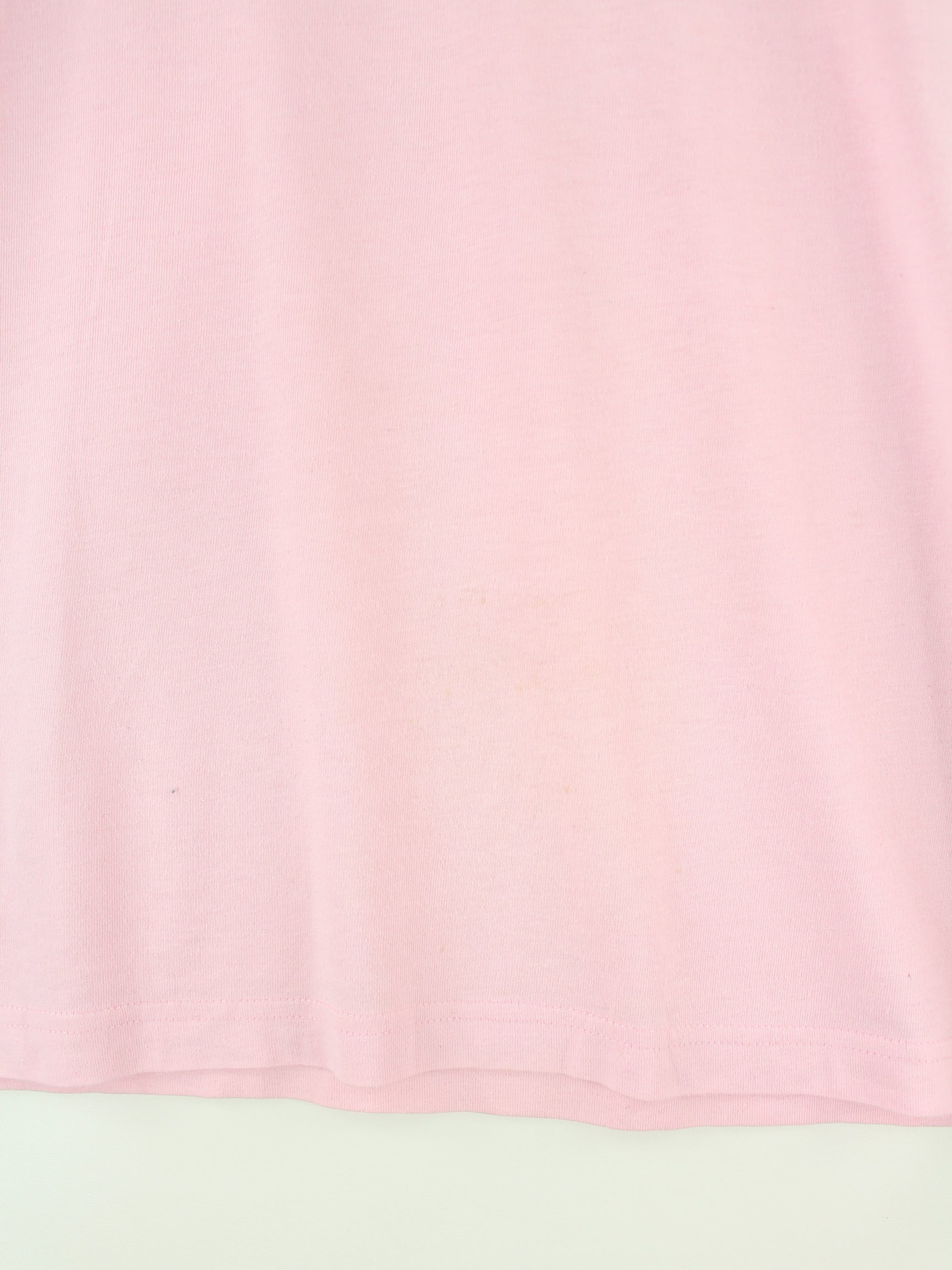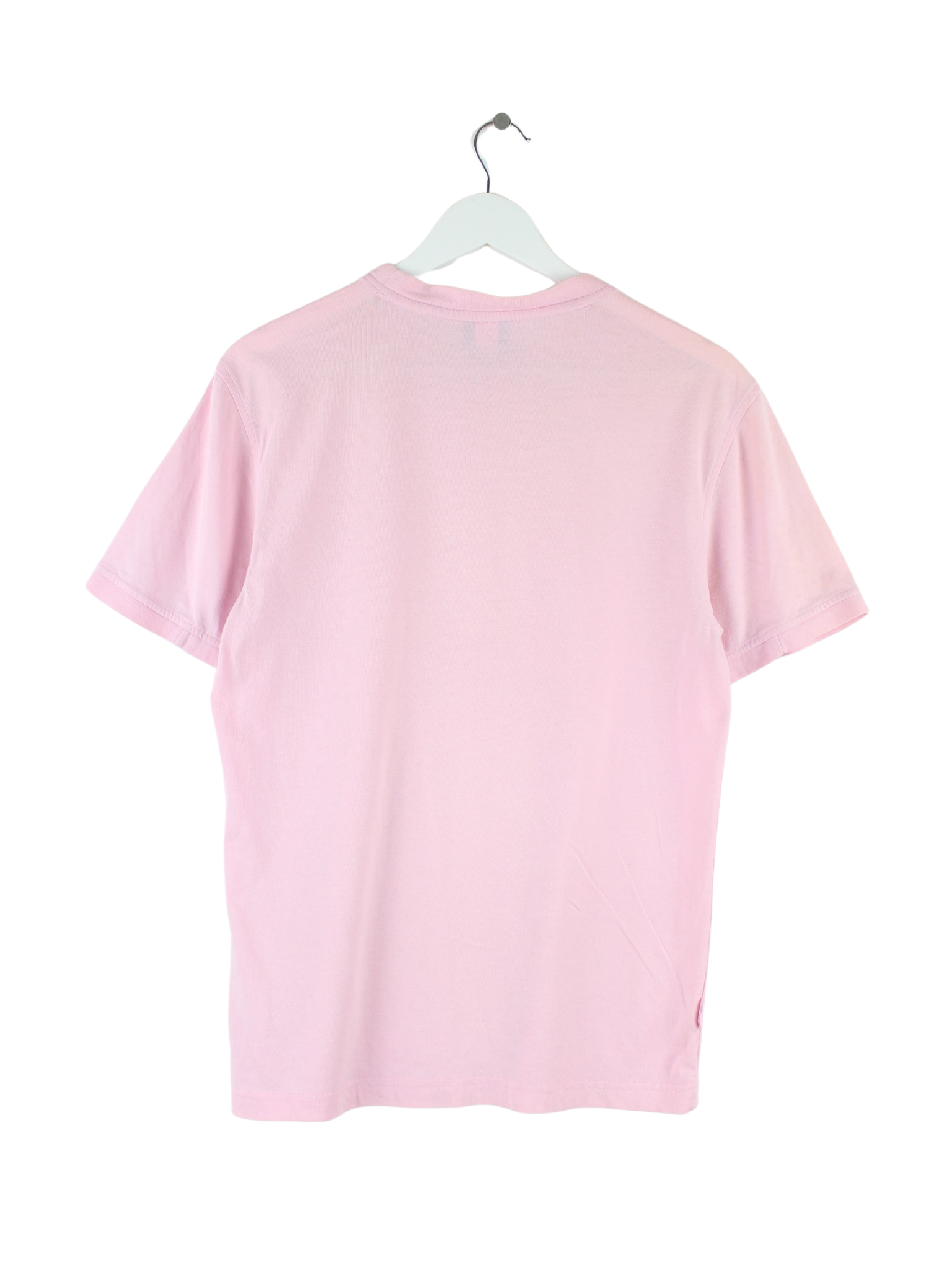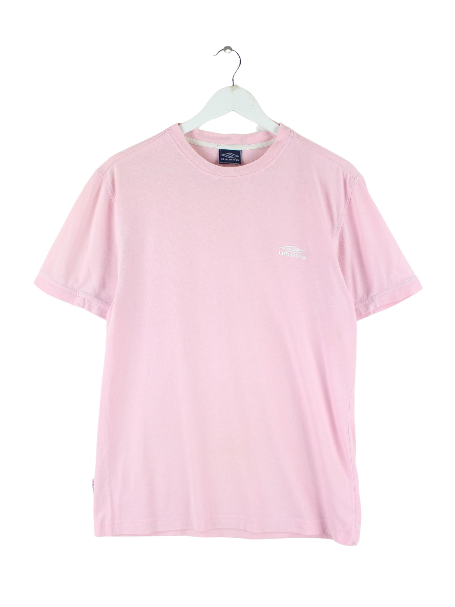 Pink T-shirt with embroidered logo from the brand Umbro from the 90's in size S. It is made of cotton and in good condition in stock.