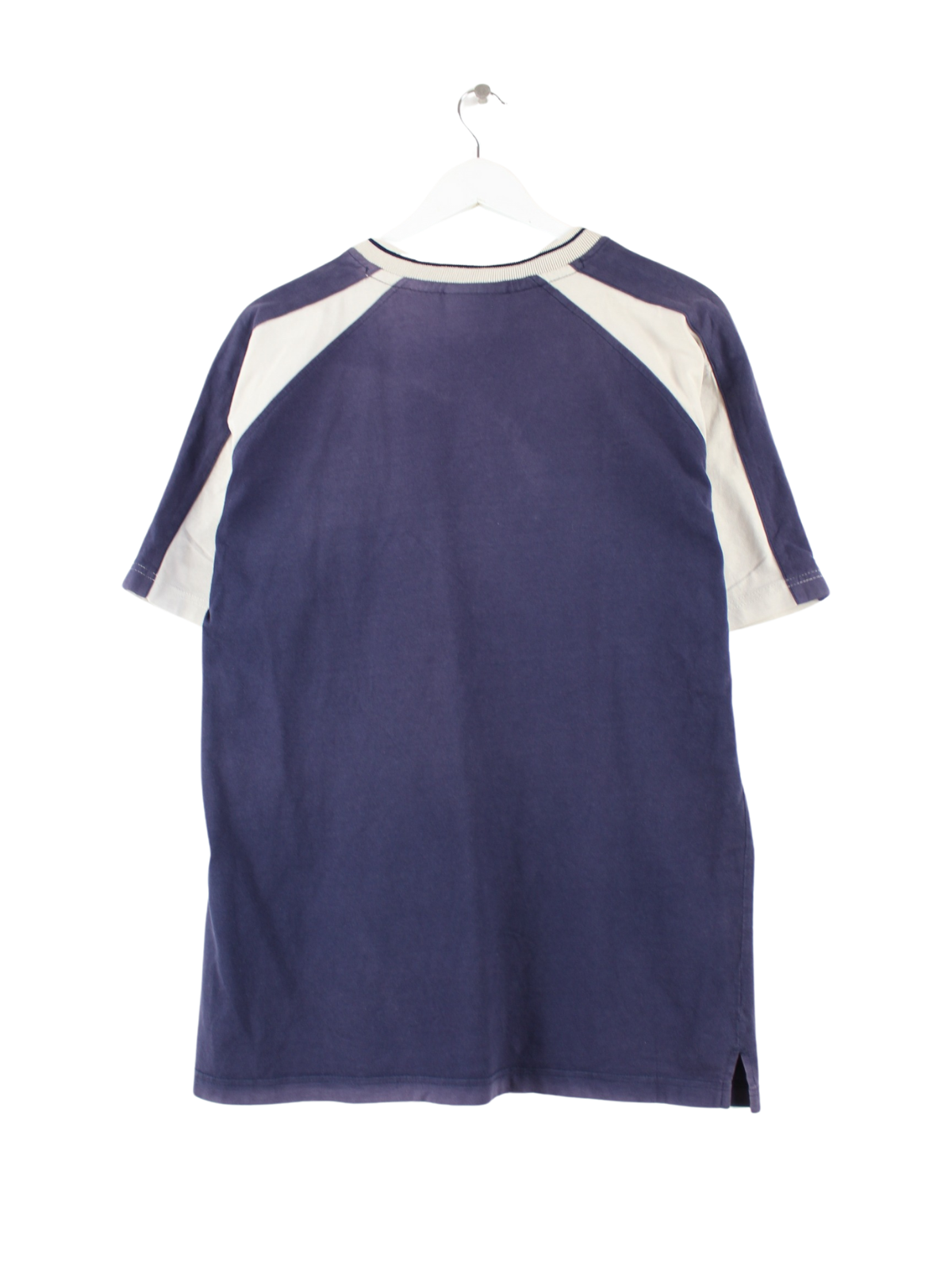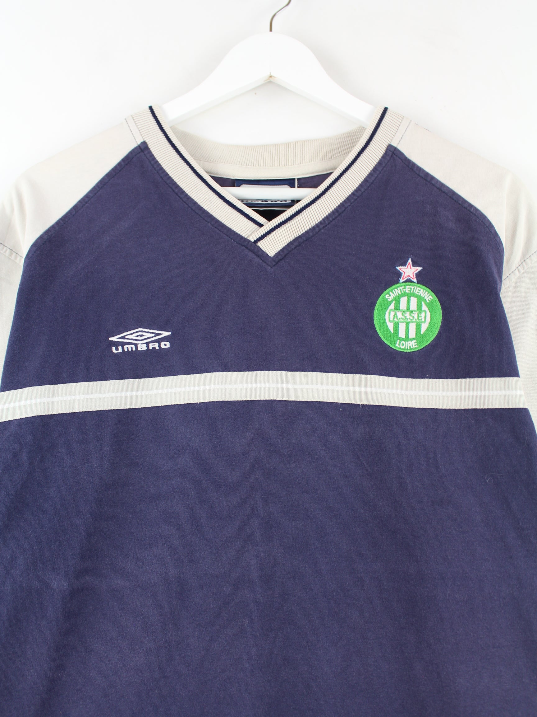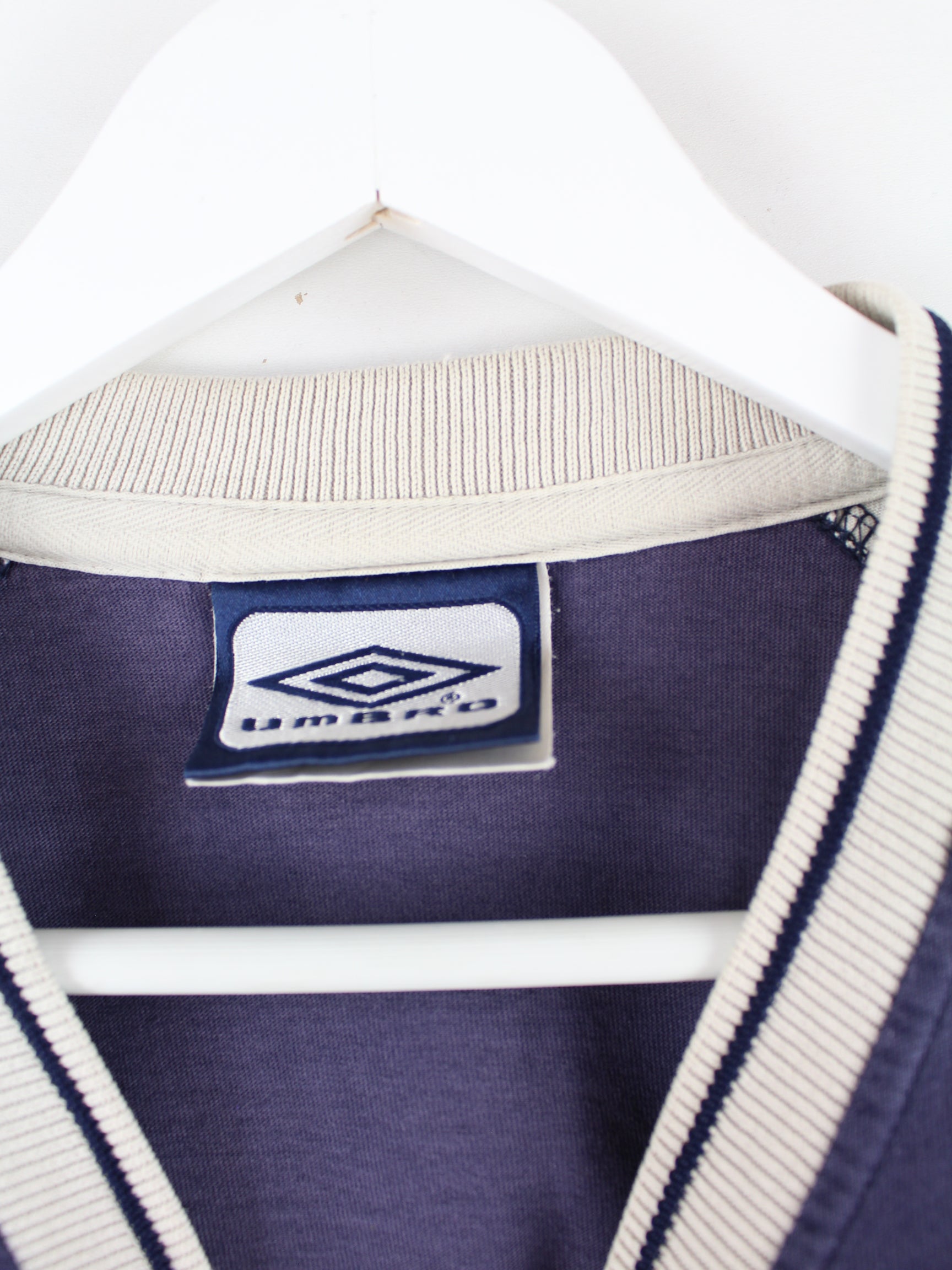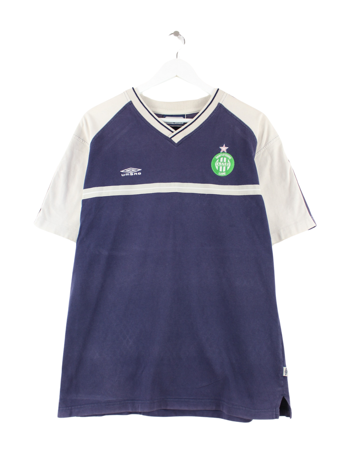 Blue T-shirt with embroidered logo by Umbro from the 90's in size M. It is made of cotton and is in good condition.