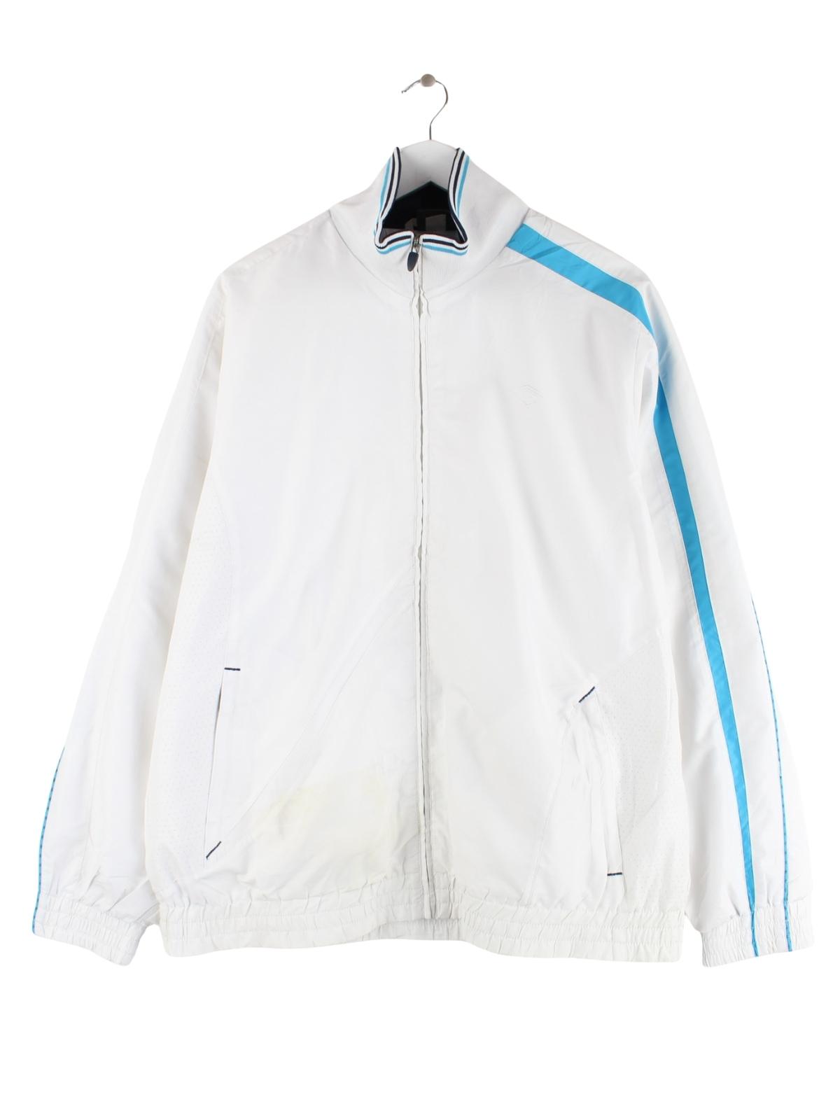 Weiße Trainingsjacke des Labels Umbro in Größe XL. Sie ist aus Synthetik gefertigt. Den Zustand würden wir als 'In Ordnung' bezeichnen (vergl. Bilder).