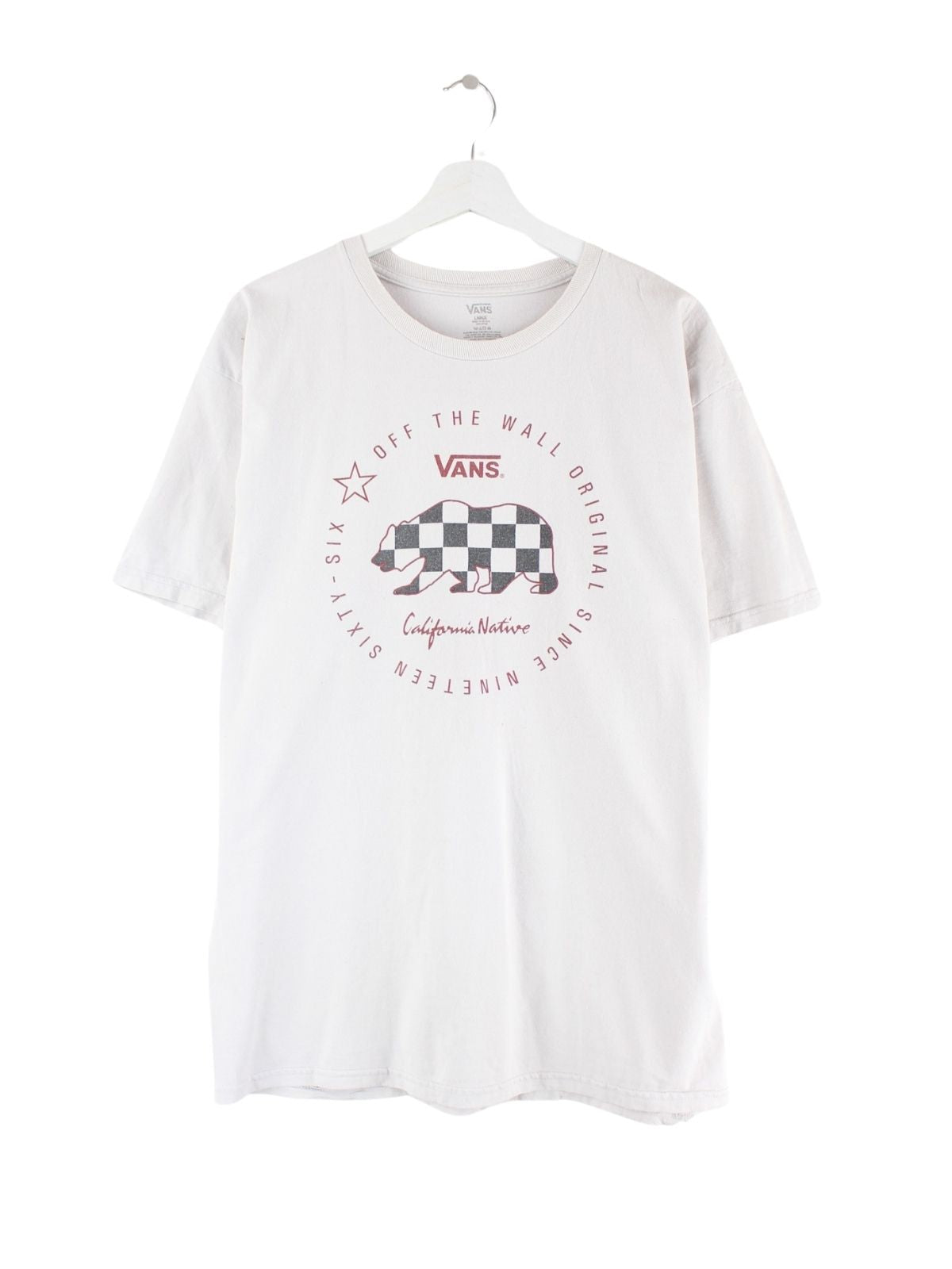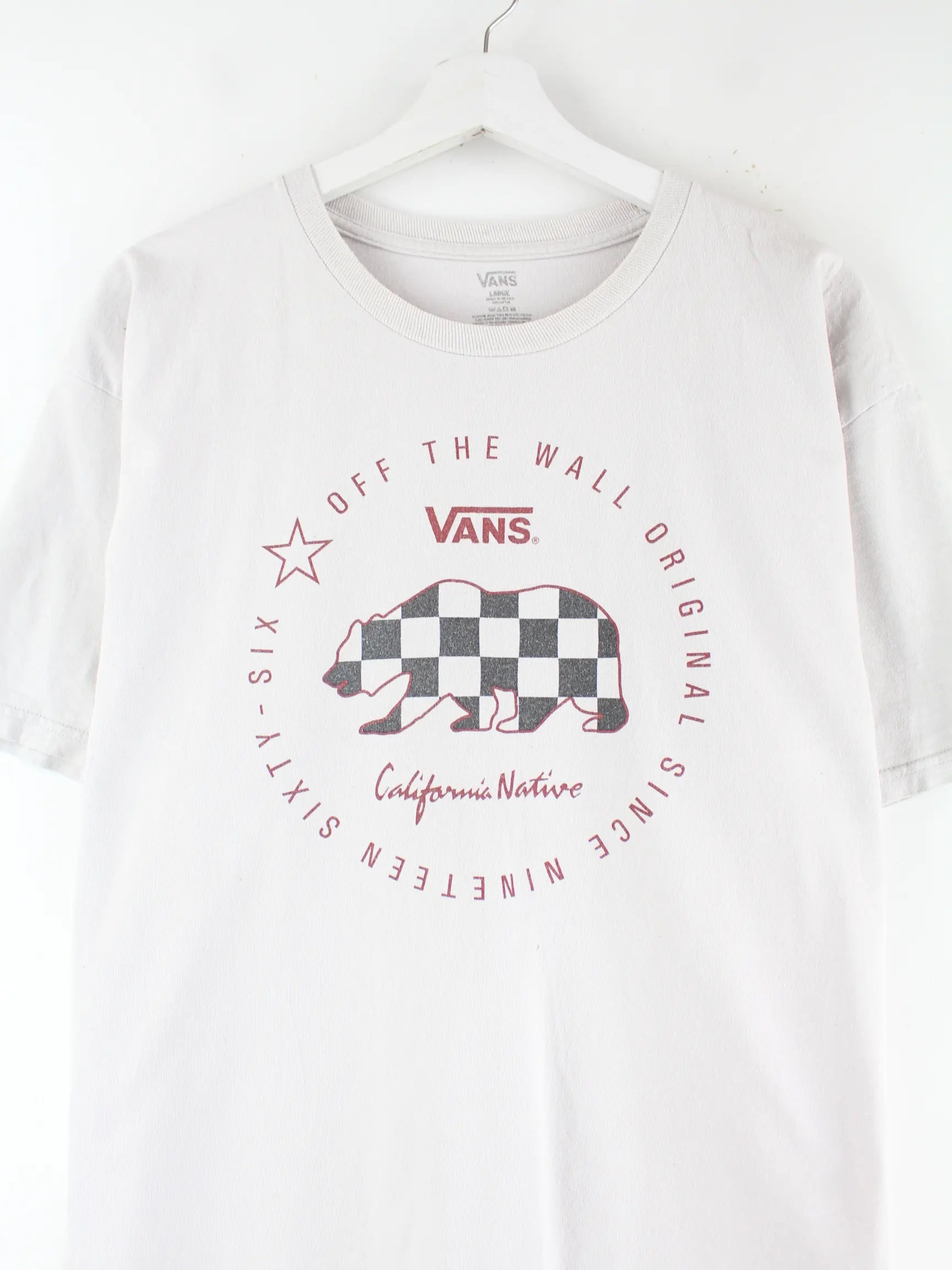 T-Shirt aus dem Hause Vans in Größe L. Es ist aus Baumwolle gefertigt und in Grau vorrätig. Mit tollem Print.
