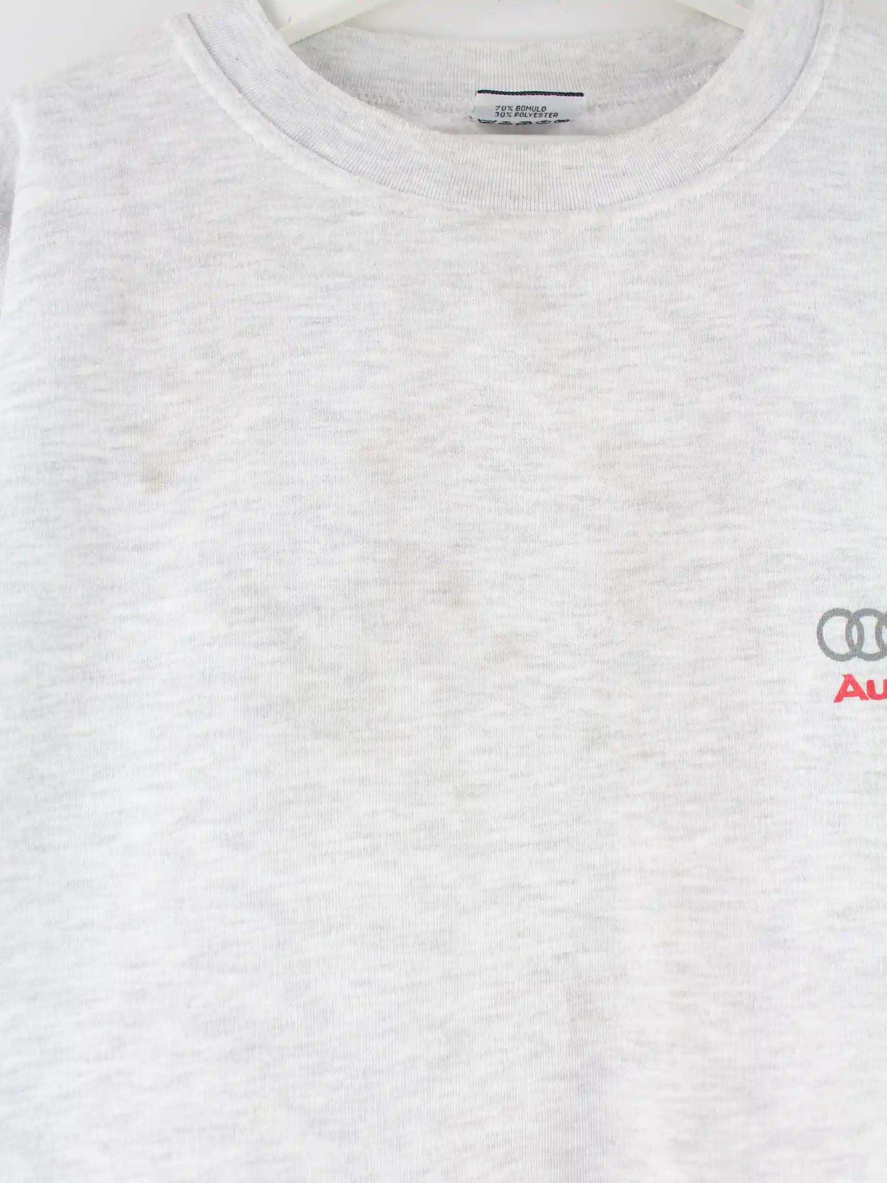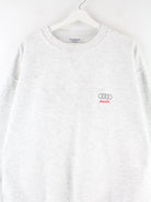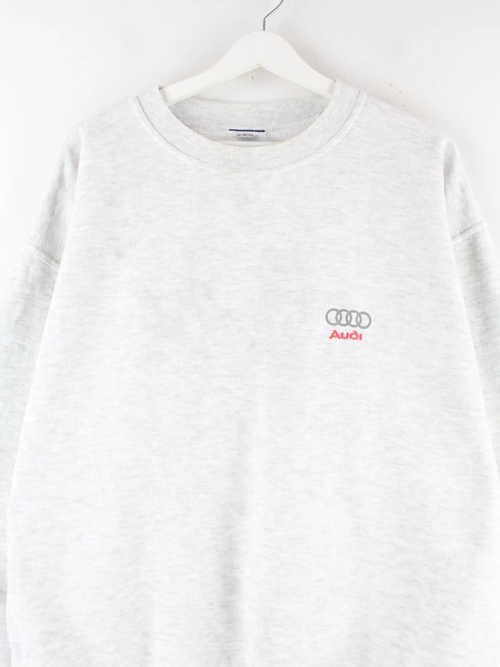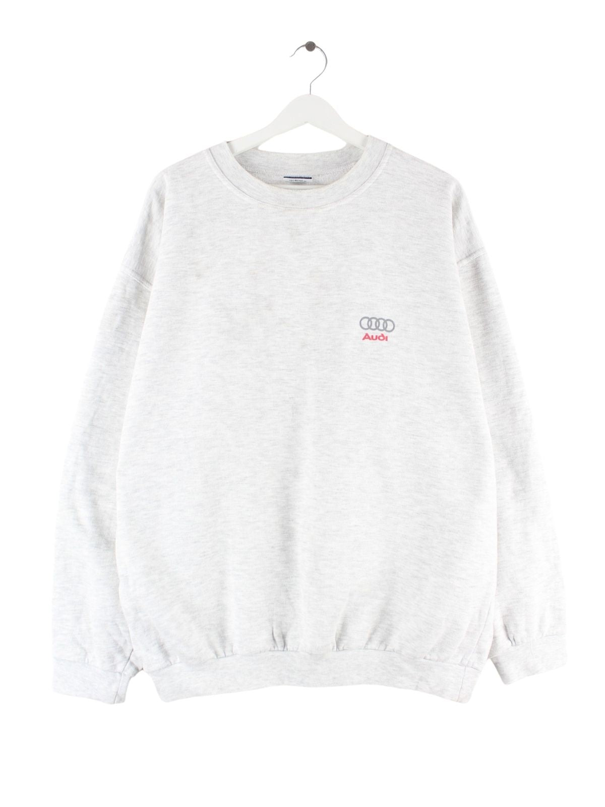 Vintage Sweater in Größe XL. Er ist aus einer Baumwollmischung angefertigt und in Grau zu bekommen. Mit schönem Audi Print.