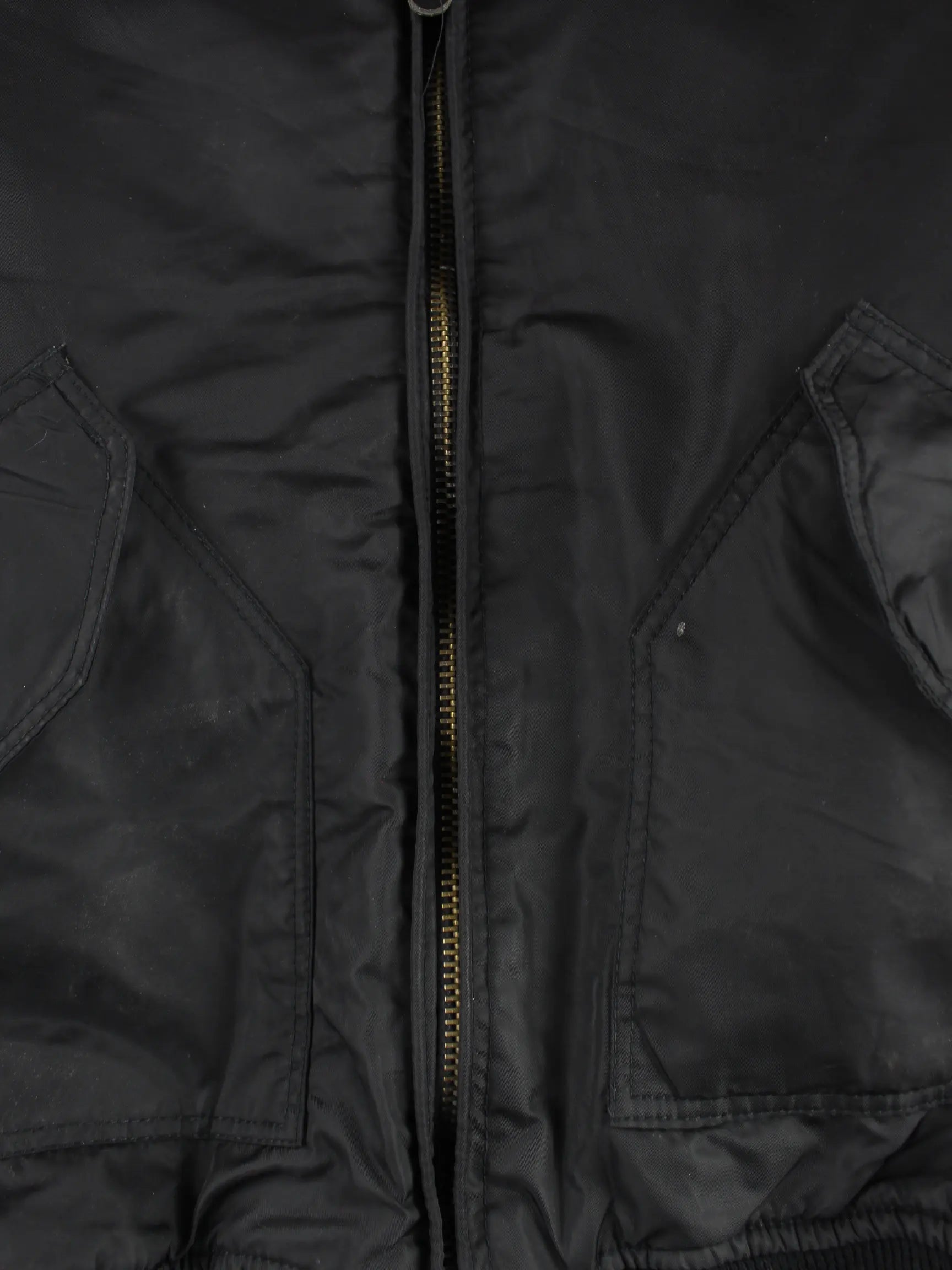 Schwarze Vintage Jacke in Größe XL. Sie ist aus Synthetik . Den Zustand würden wir als 'In Ordnung' bezeichnen (vergl. Bilder).