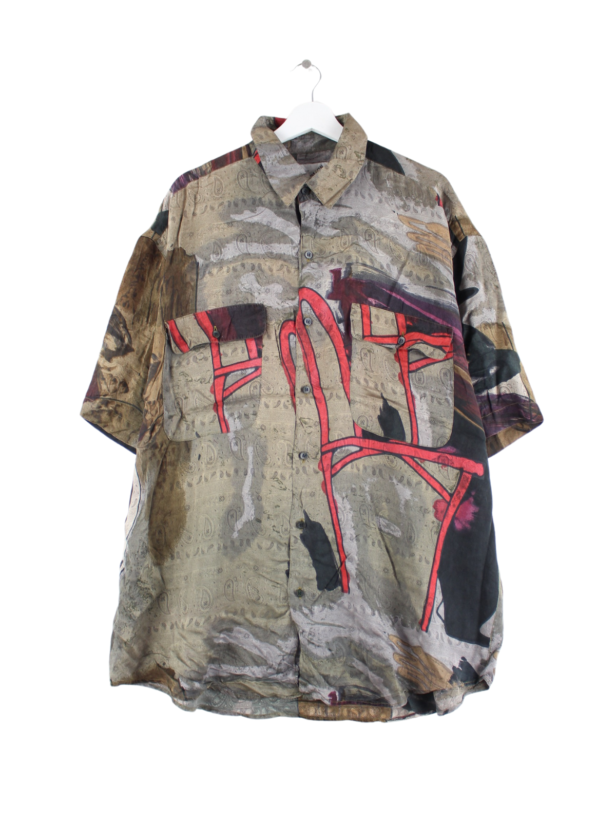 Vintage 00s Crazy Pattern Short Sleeve Shirt Multicolor XL