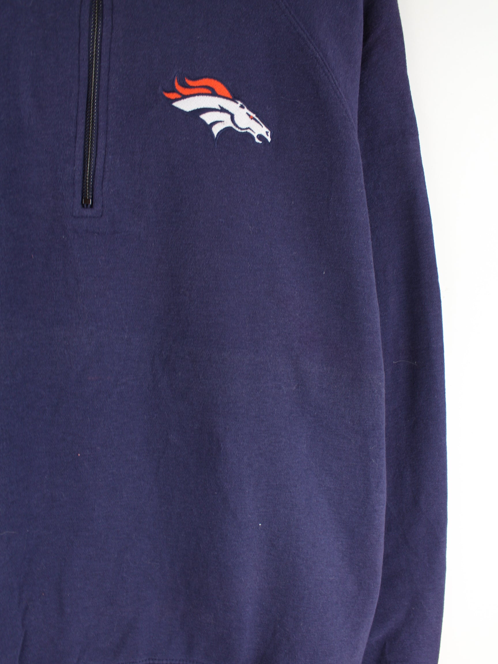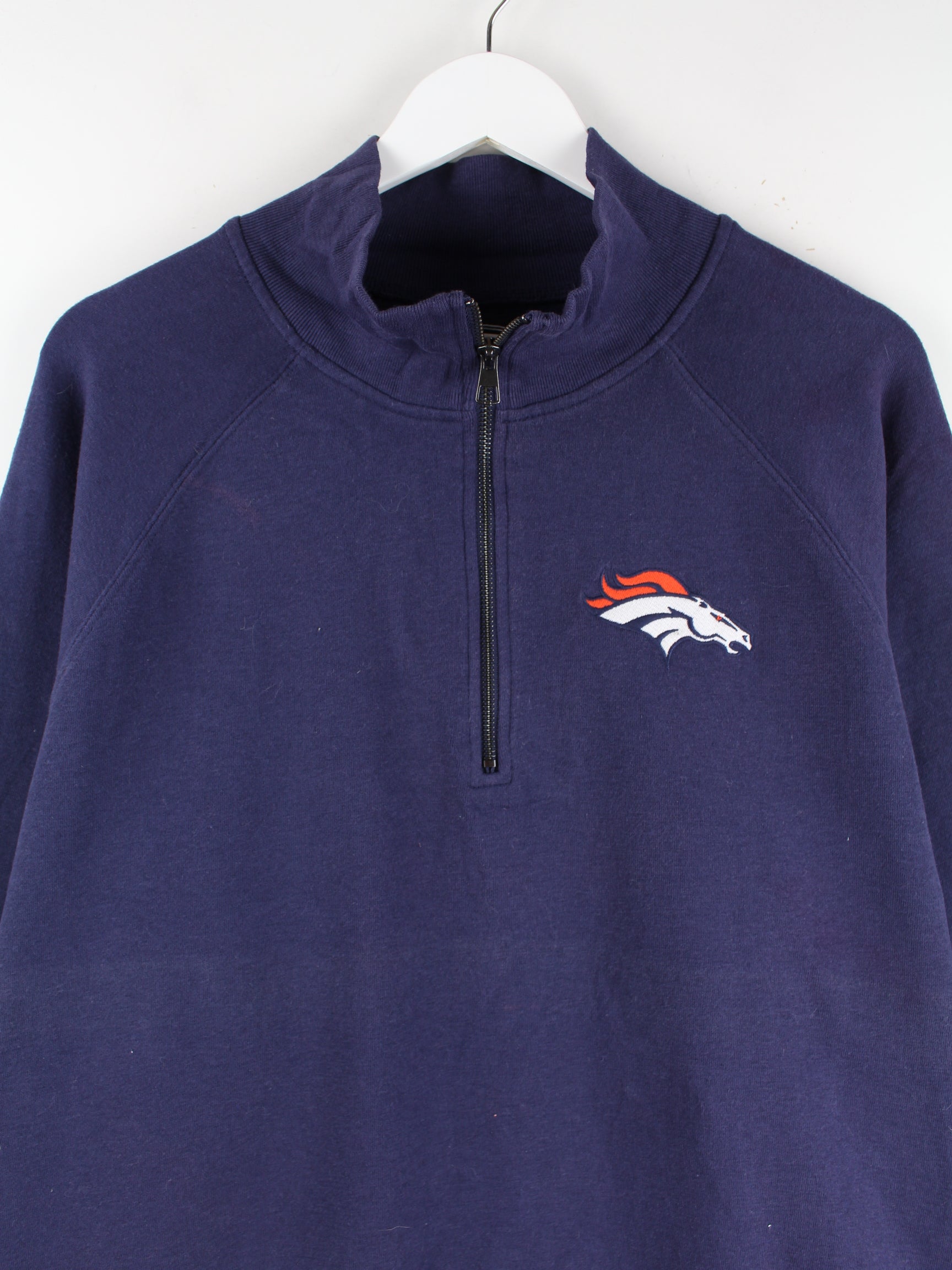 Vintage 00s Denver Broncos Embroidered Half Zip Sweater Blau XL