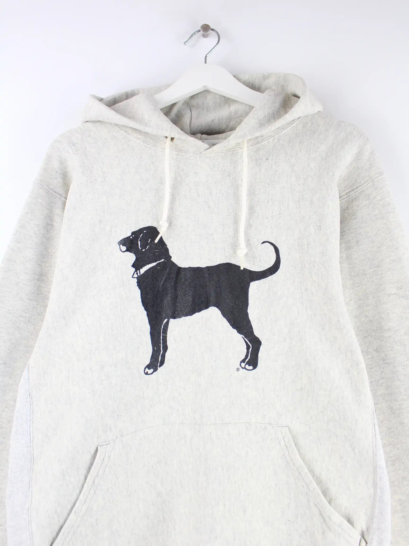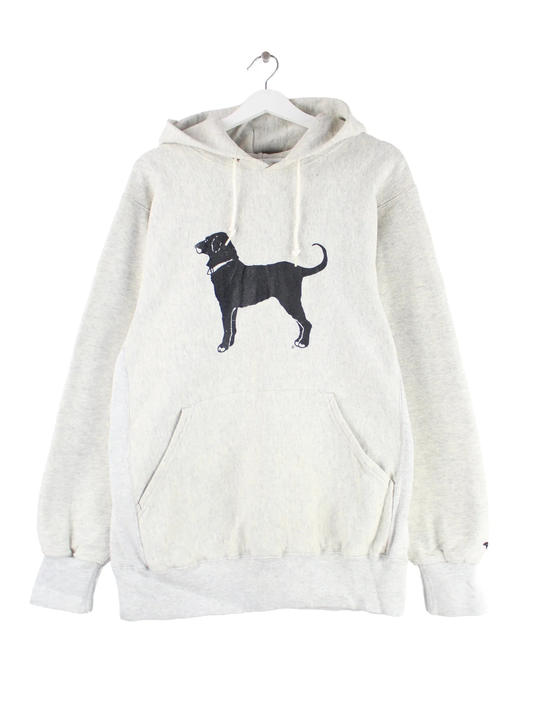 Vintage Hoodie in Größe L. Er ist aus einer Baumwollmischung gefertigt und in Grau in Stock. Mit schickem Dog Print.
