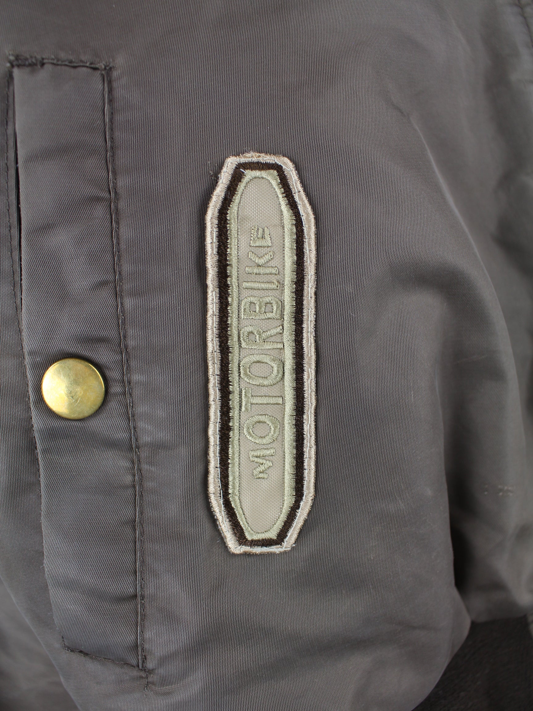 Brown vintage jacket with embroidery in size S. It is made of synthetic material and is in good condition.
