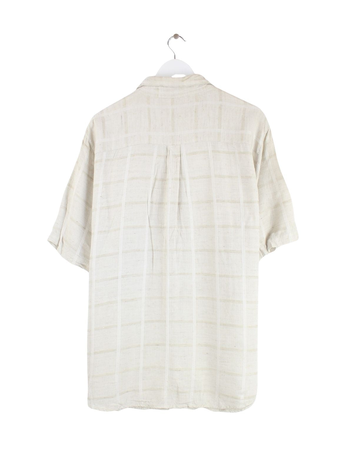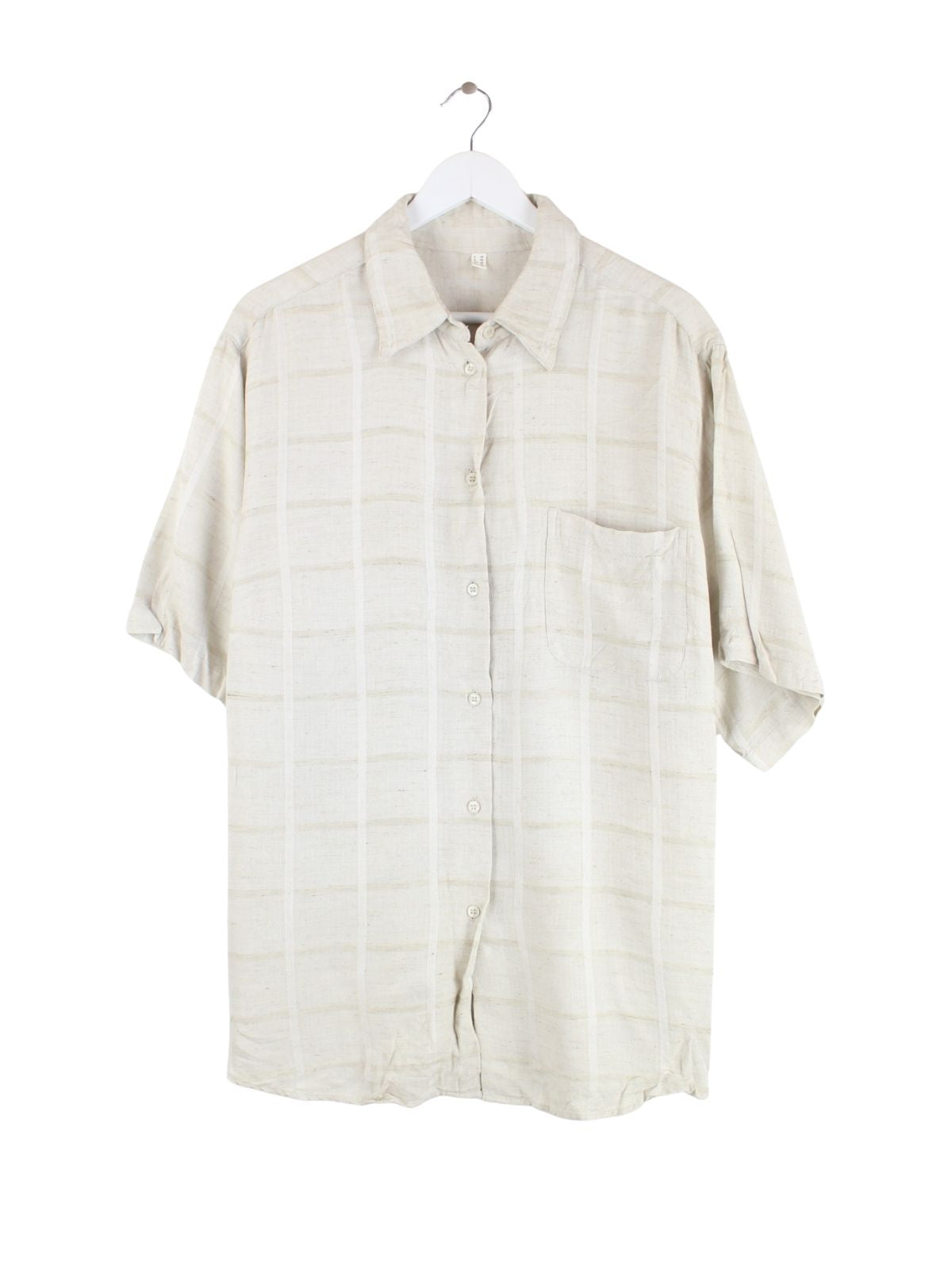 Vintage Freizeit Hemd in Größe XL. Es ist aus einer Synthetikmischung gemacht und in Beige vorrätig.
