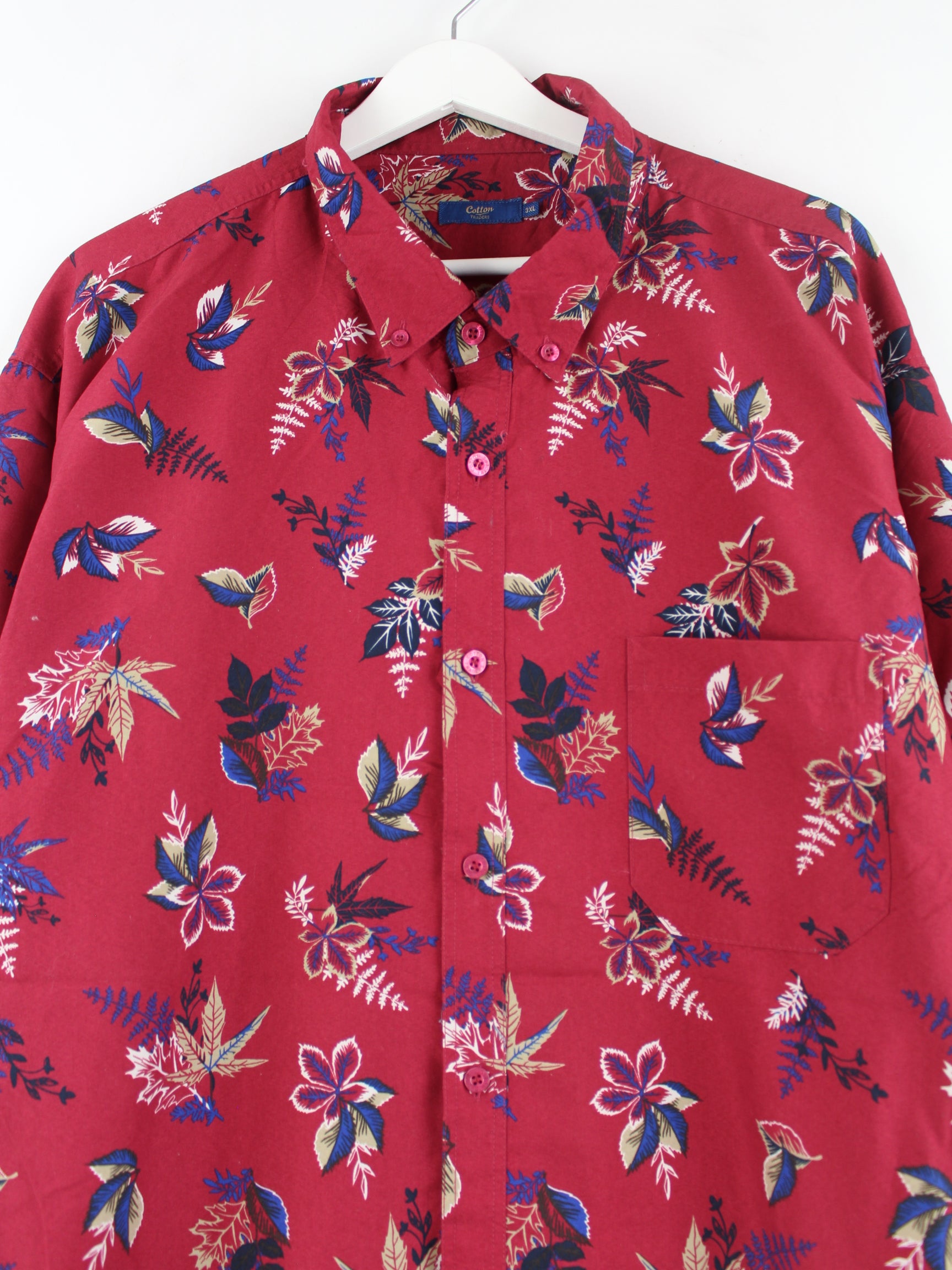 Vintage casual shirt in size 3XL. It is made of cotton and in red in stock.